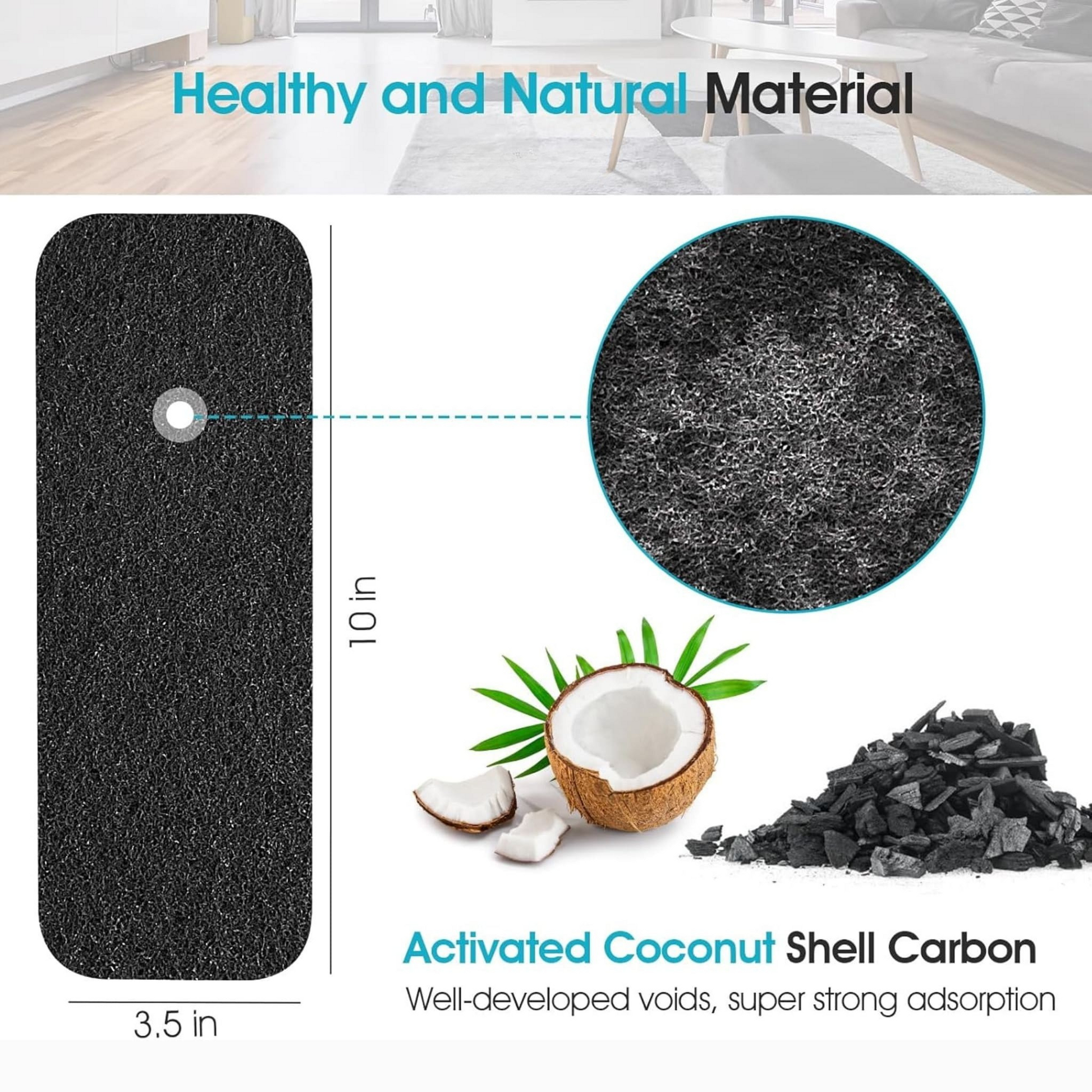 ✔️ Activated Coconut Carbon – Filters dust, smoke, pollen, VOCs & more for fresher air