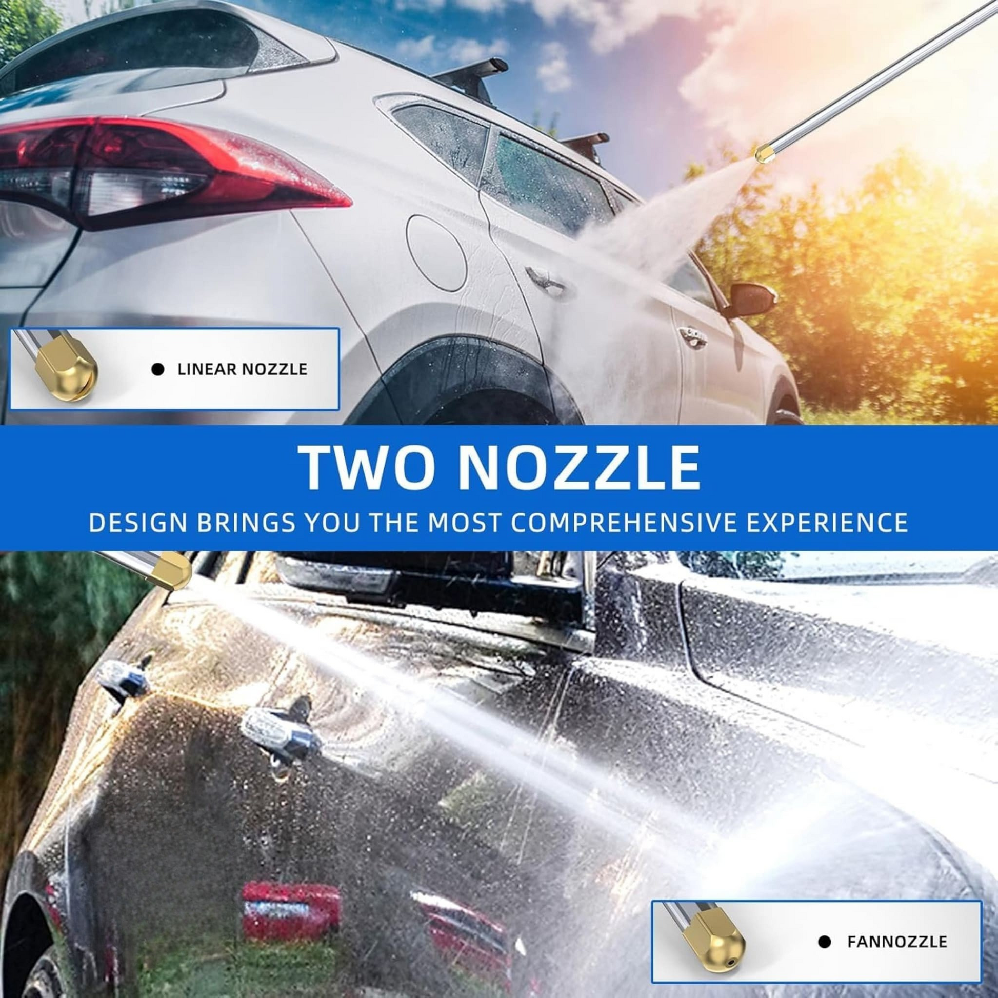 ✔️ Three Spray Nozzles – Jet, fan, and adjustable options for every task