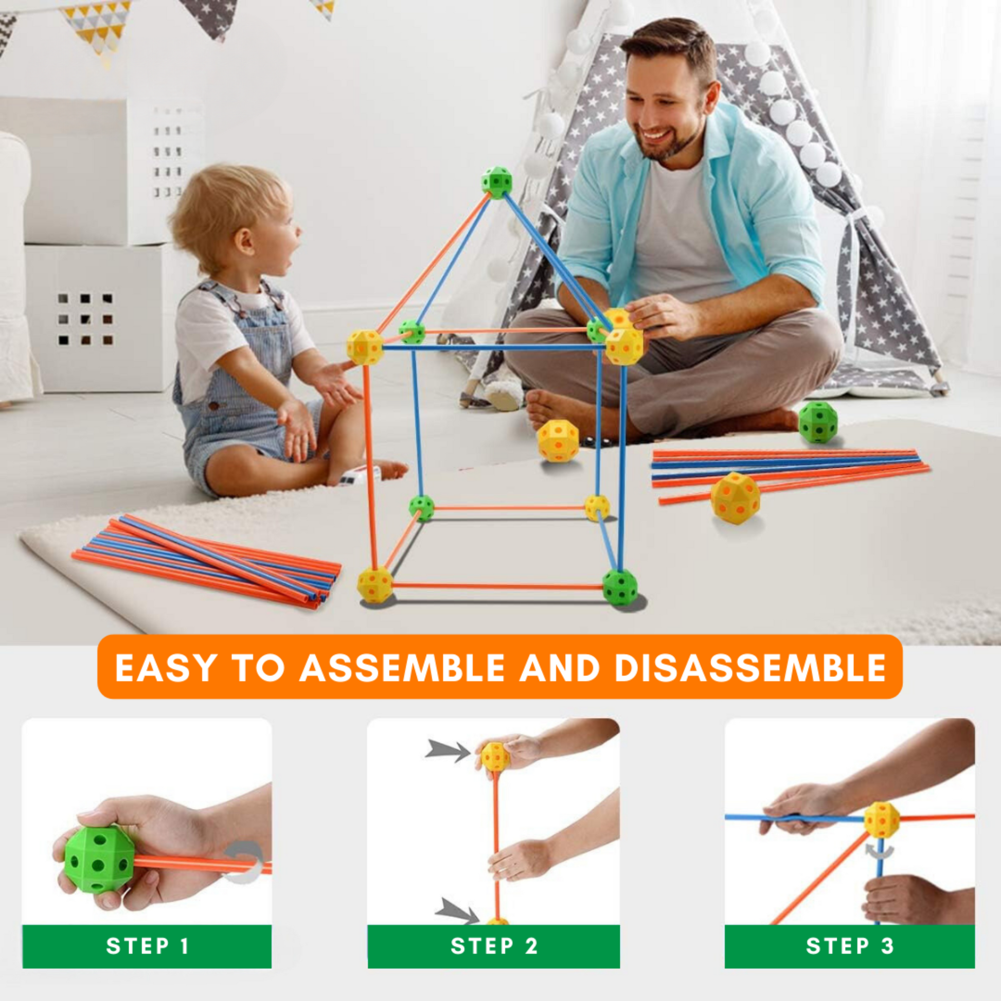 Constructing imaginative forts has never been simpler. With durable, high-quality plastic rods and ball joints, the pieces snap together effortlessly. Your kids can focus on creating their dream hut without any frustration. And when the fun is over, it’s just as easy to disassemble and pack away for next time. No more worrying about collapsing structures or lost parts.