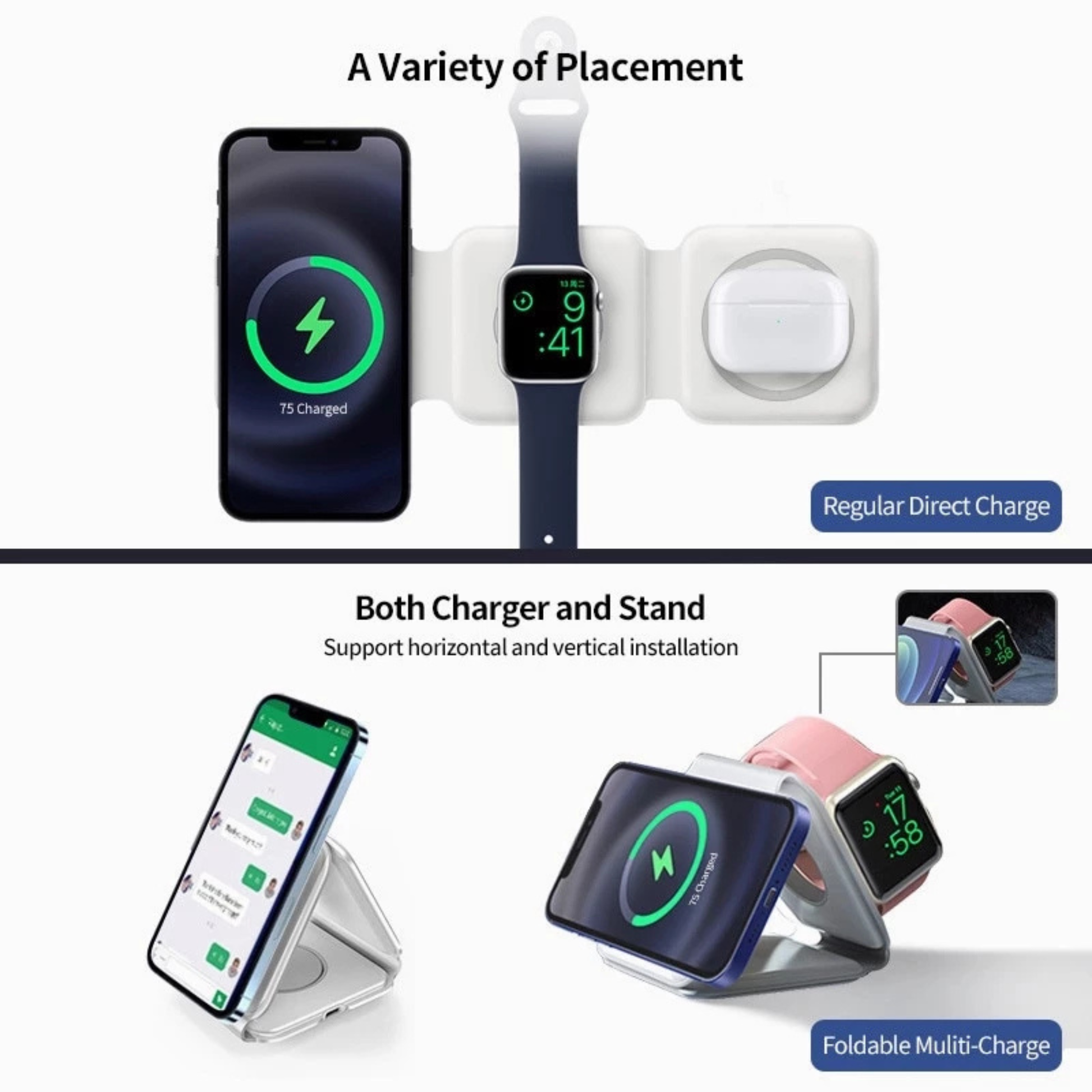 ✔️ 3-in-1 fast charging for phone, watch, and earbuds
