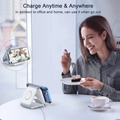 The magnetic tri-fold design sits flat on the bedside, folds into a stand for video calls or alarms, and packs into any bag for commutes, weekend matches, or airport runs. One hub, one cable — you're always sorted.