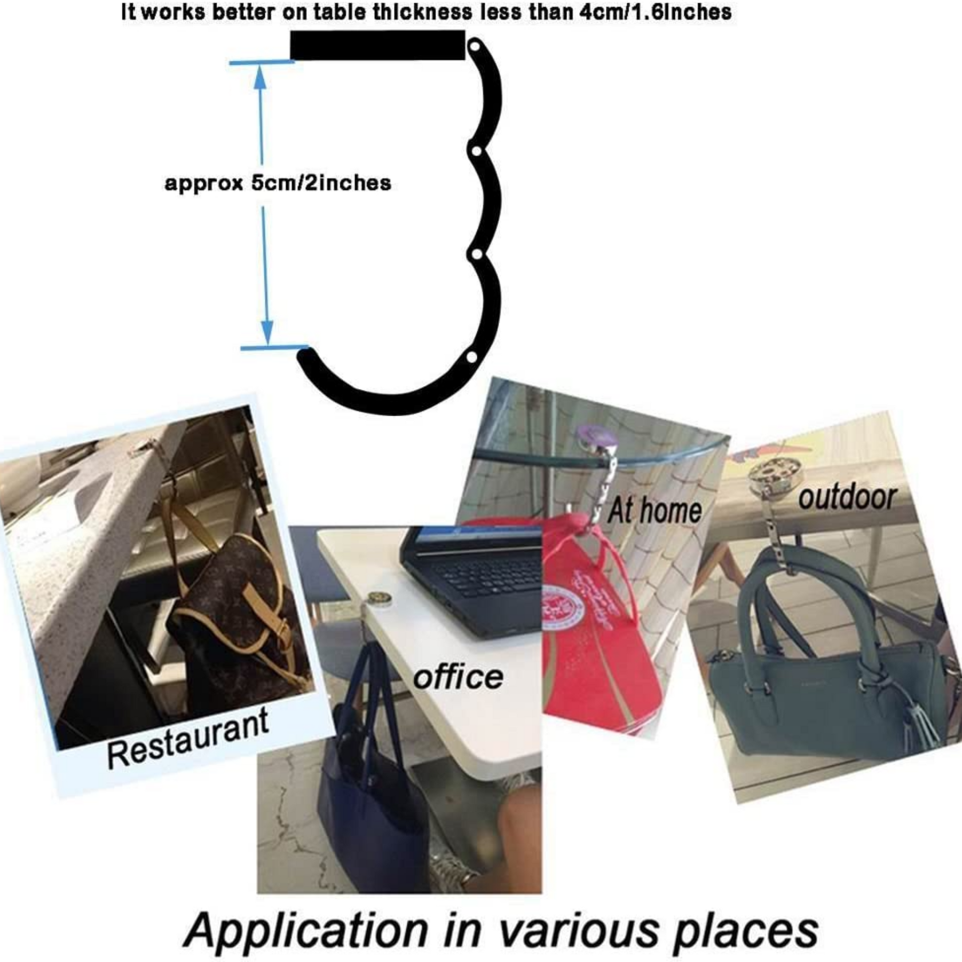Say goodbye to awkwardly juggling your handbag or placing it on unsanitary floors. CLOVERHOOK offers a sleek, compact solution that instantly creates a secure, stylish resting place for your purse. Designed for busy professionals, fashion-conscious women, and frequent travelers, this foldable handbag hanger ensures your luxury bag stays clean, secure, and within reach at all times.