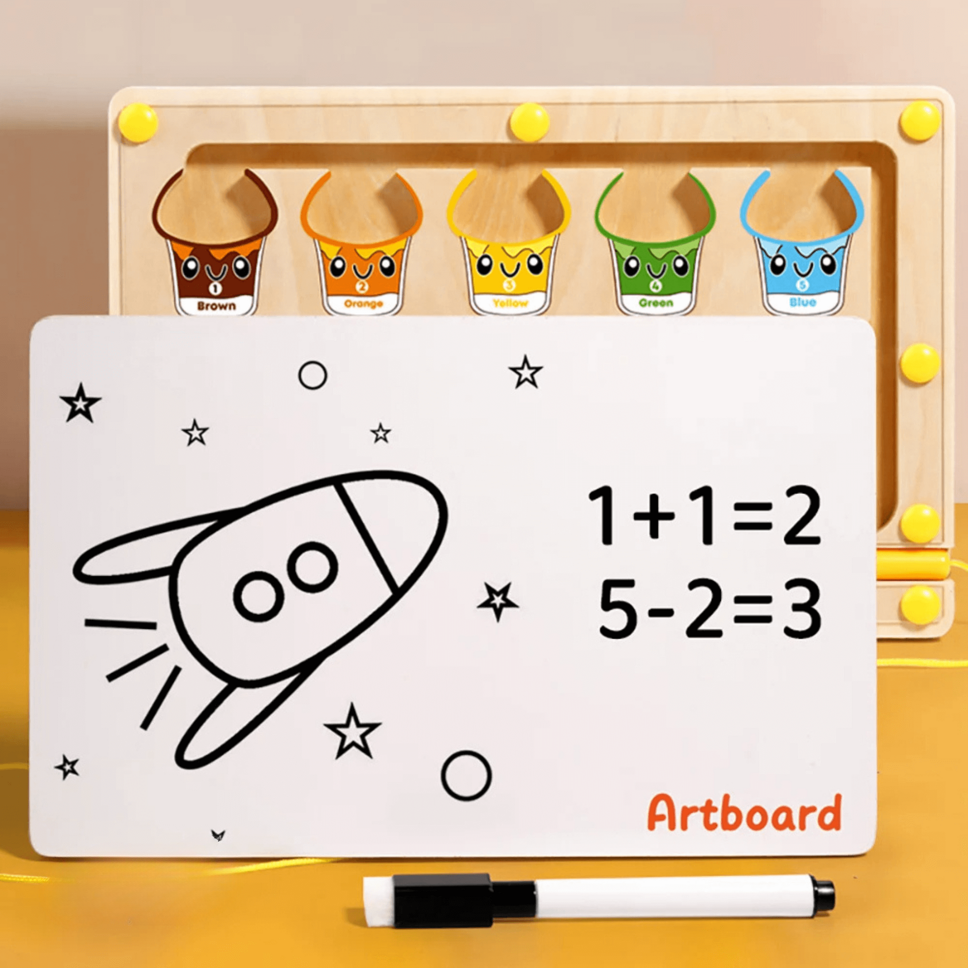 1 x COLORO 2 In 1 Wooden Magnetic Color & Number Maze with Back drawing board