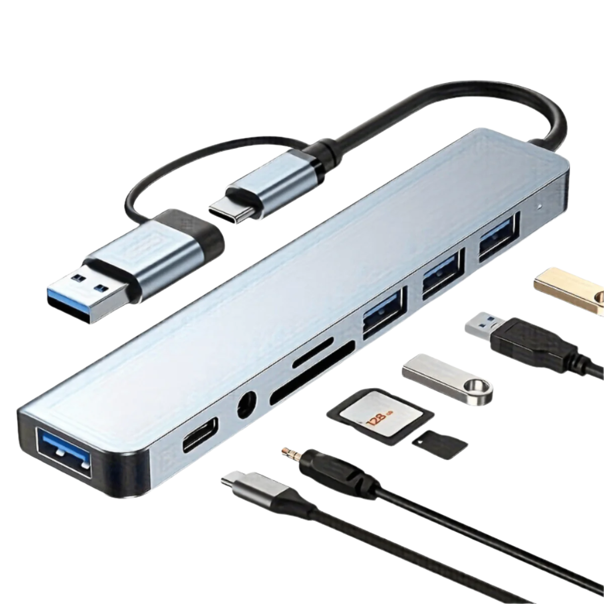 The VIENON USB C to USB 3.0 hub boasts a comprehensive 8-in-1 design, featuring 1 x USB 3.0 port, 3 x USB 2.0 ports, 1 x USB C 2.0 port, SD/TF Card Reader, and 1 x 3.5mm Audio Jack. Whether you're transferring data, connecting peripherals, or enjoying multimedia, this hub offers unparalleled versatility to meet all your needs.