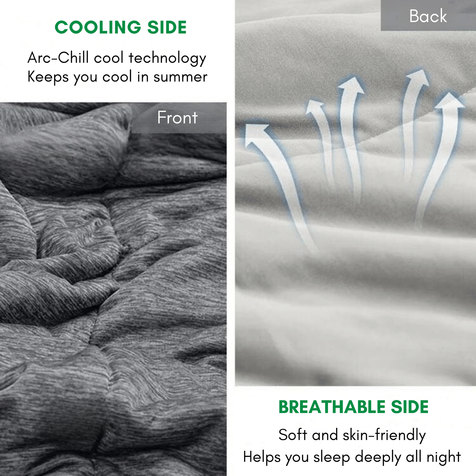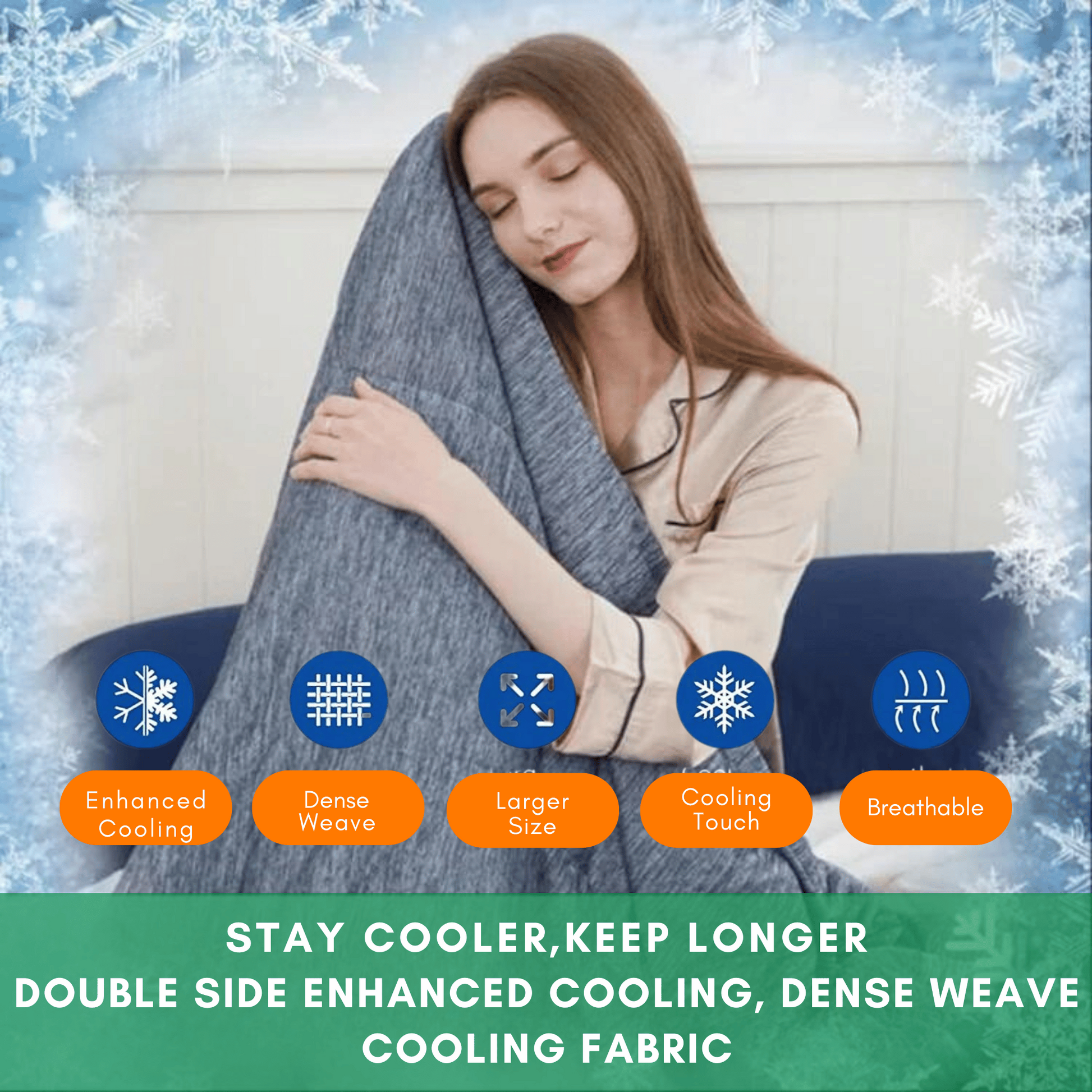 The COOLWRAP Fiber Cooling Blanket is crafted from Japanese Q-Max 0.5 Arc-Chill Cooling Fibers, designed to swiftly absorb body heat. This advanced material ensures you remain cool and sweat-free throughout the night, even in the hottest summer temperatures. Perfect for hot sleepers and those who experience night sweats, this blanket helps improve sleep quality by providing a consistently cool environment.