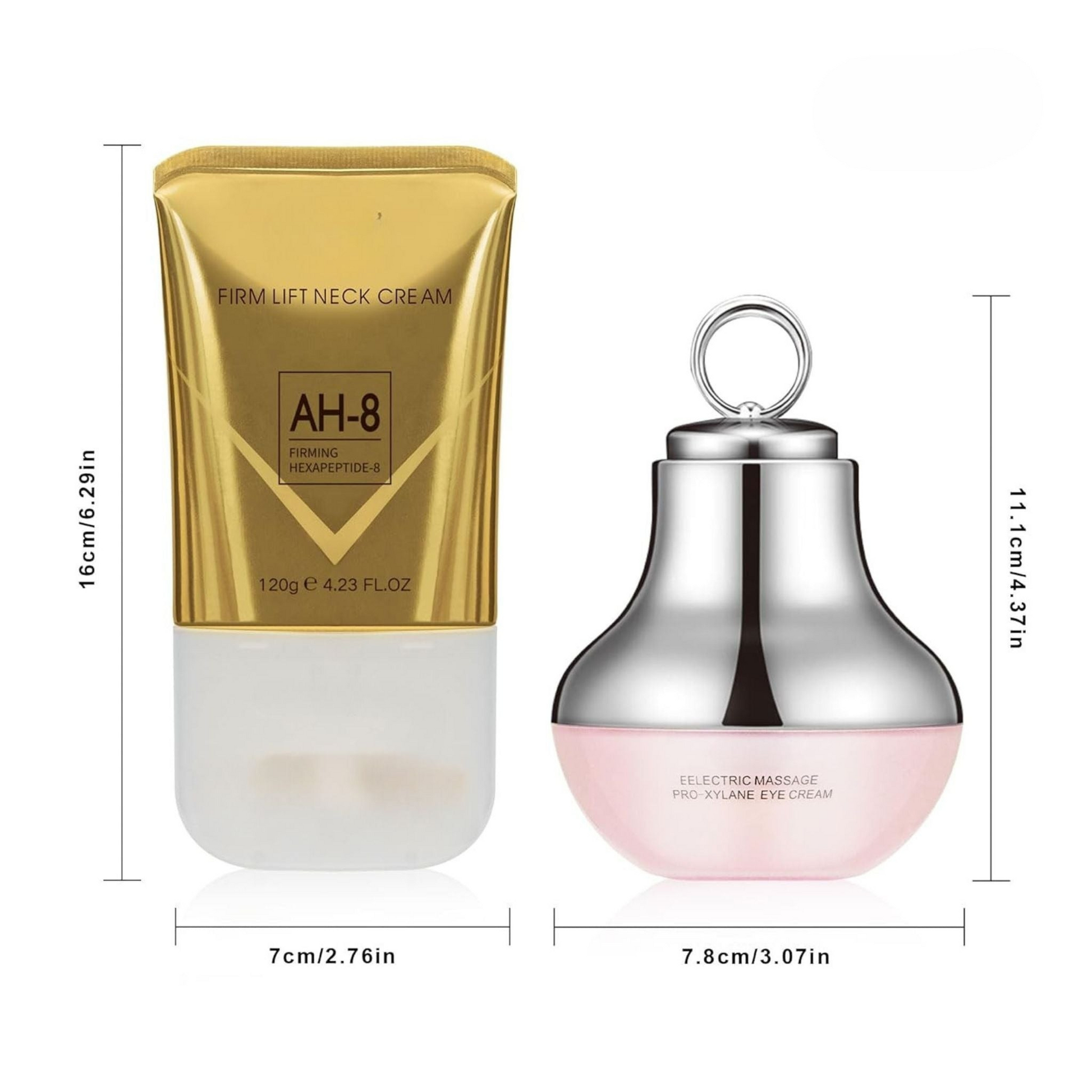Apply a small amount of the neck cream to clean, dry skin using upward strokes from the collarbone to the chin. Gently massage until fully absorbed. For the eye cream, dab a pea-sized amount under each eye using your ring finger, tapping lightly until absorbed—avoid rubbing. Use both products morning and night for best results. Suitable for layering under makeup or worn overnight as part of your evening routine.