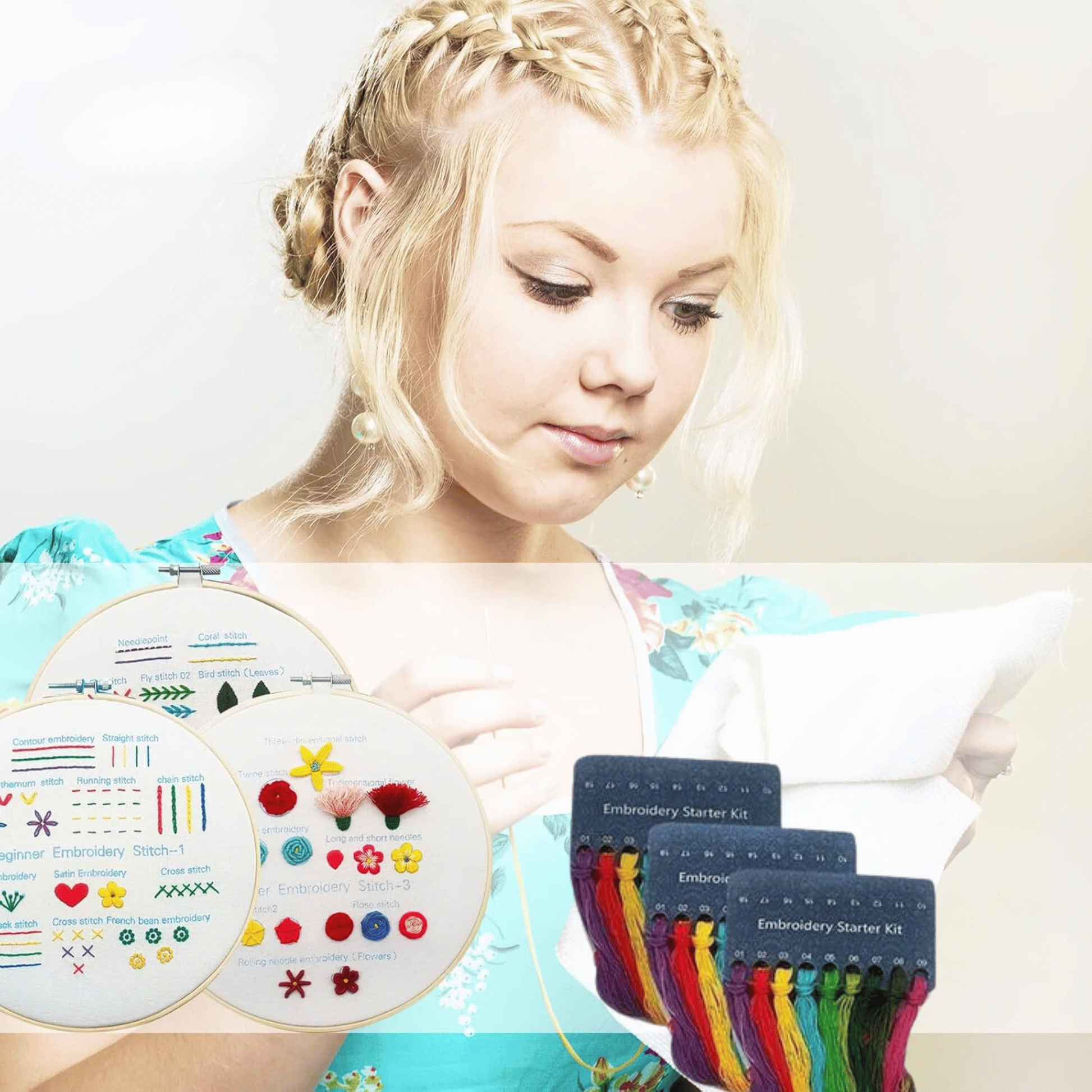 Our DESIGNDREAM Embroidery Starter Kit comes with everything you need to start your embroidery journey. With 3 sets of enough color threads, 3 pieces of embroidery fabric with patterns, and 9 embroidery needles, you’ll have all the essential materials at your fingertips. The included bamboo embroidery hoop, scissors, needle threader, seam ripper, and detailed instructions make it easy for beginners to dive right into their first project.