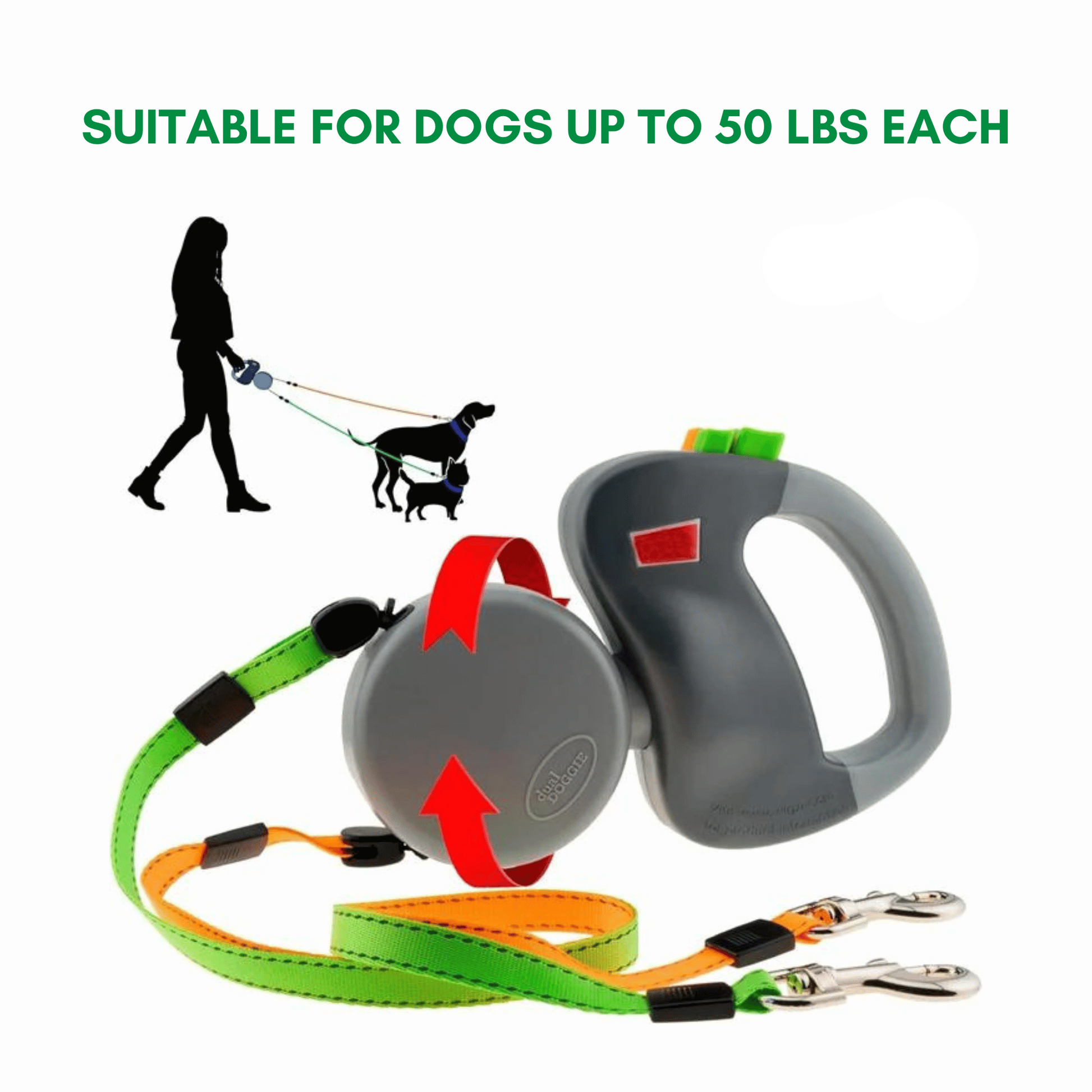 1 x DUALWALK Two Dog Reflective Retractable Pet Leash