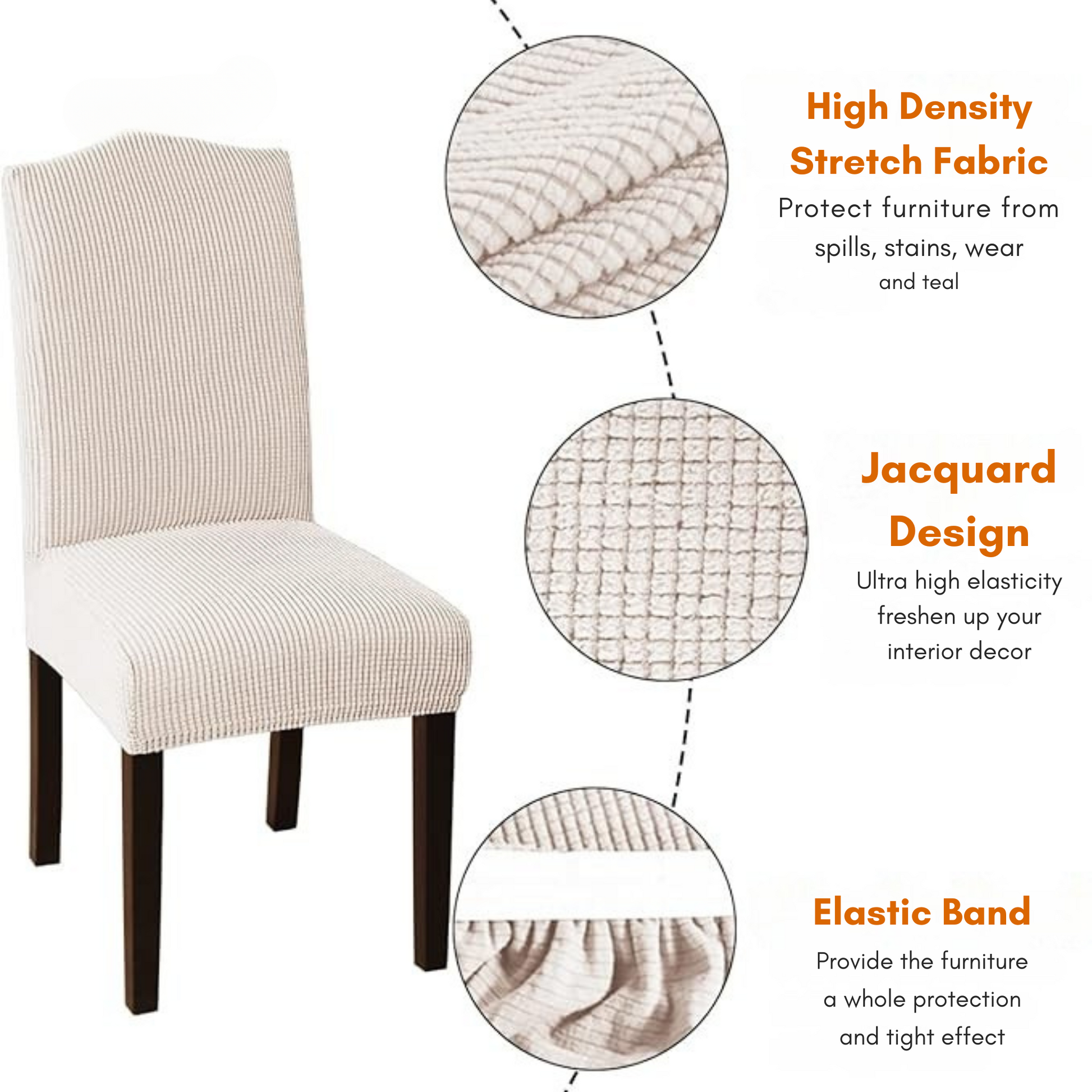 ✔️ Universal Fit & Stylish Design – Stretch fabric adapts to most dining chair sizes for a seamless look