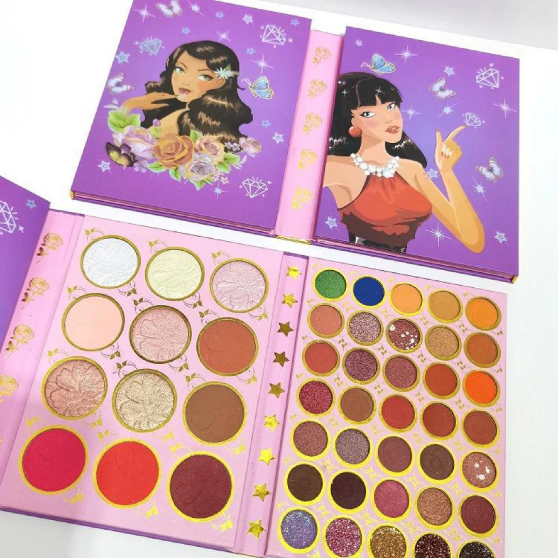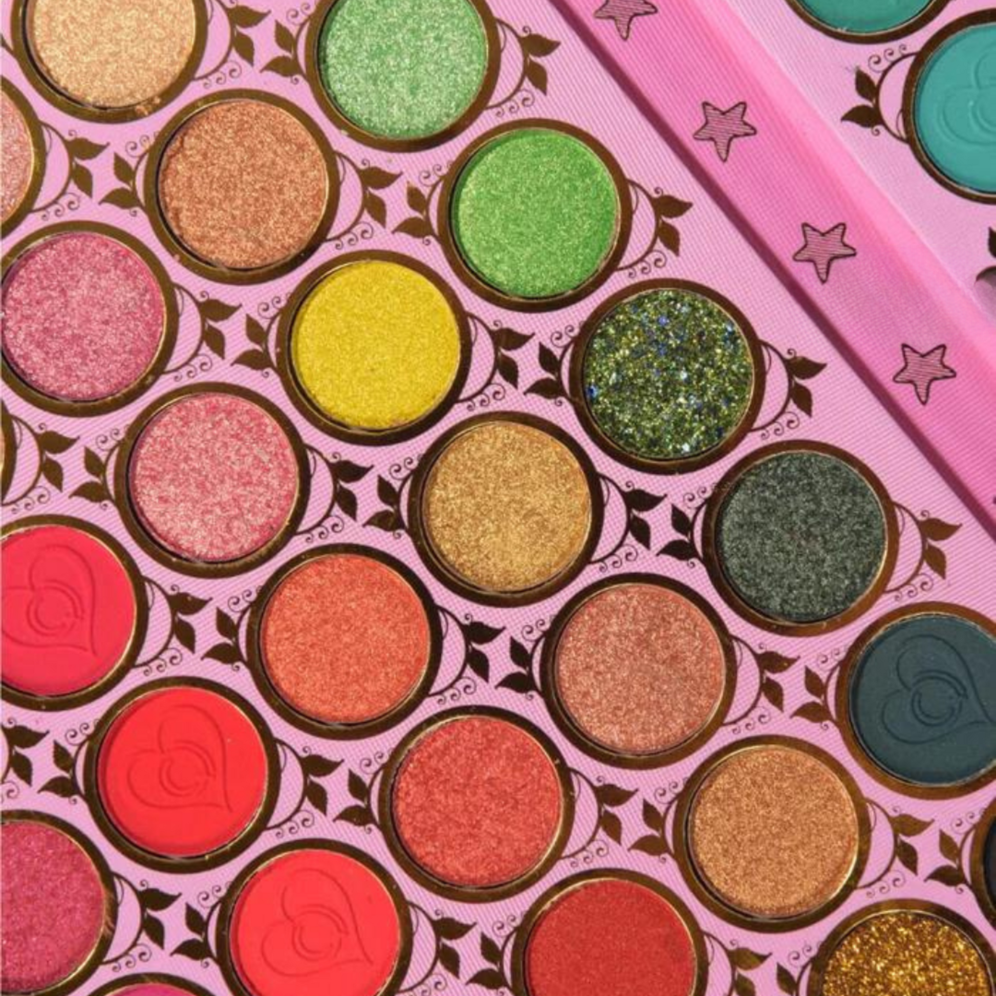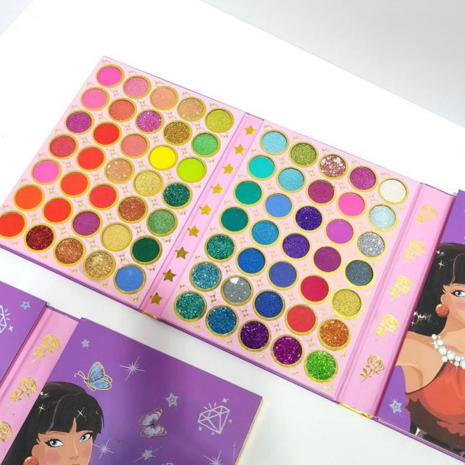 ✔️ Mix of shimmering metallics, boldly pressed glitters, and silky matte shades
