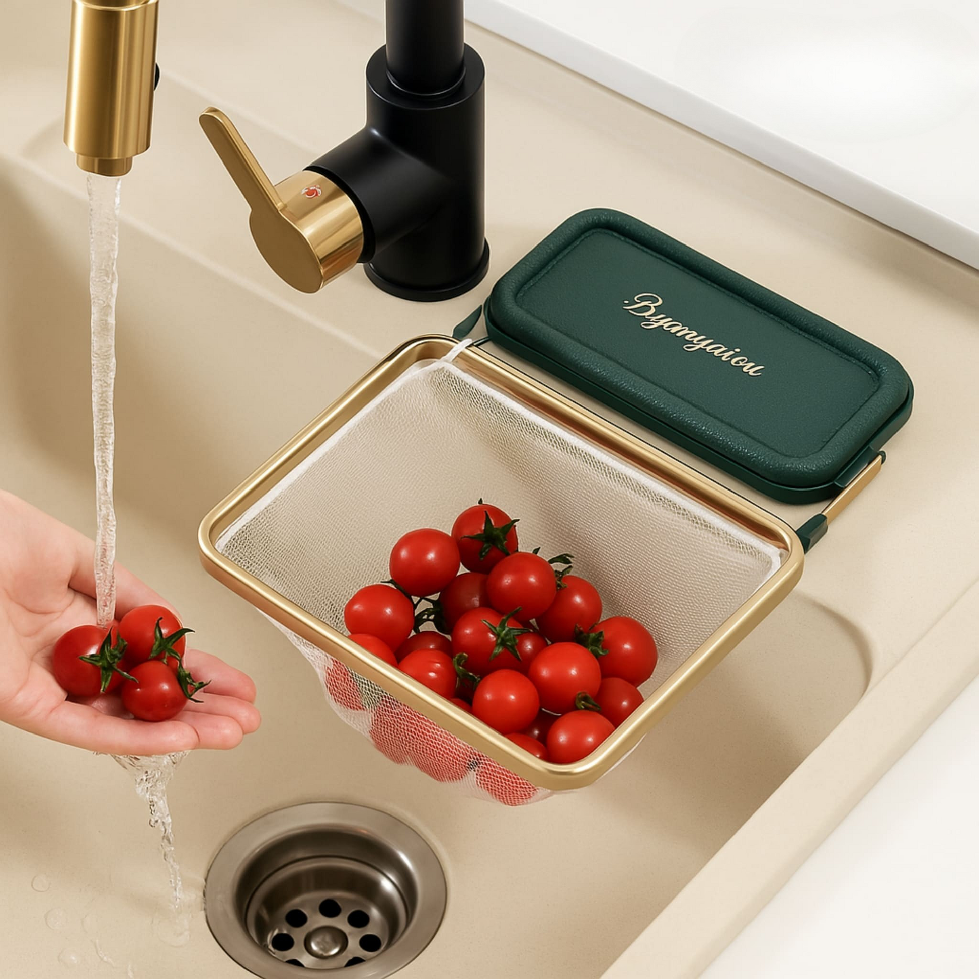 No more food scraps floating around your sink or blocking the drain. The FILTRIQ sits discreetly in your sink corner, capturing everything from vegetable peels to coffee grounds before they become a problem. Just drop in a mesh bag, let it catch the waste, and toss it when full—done.