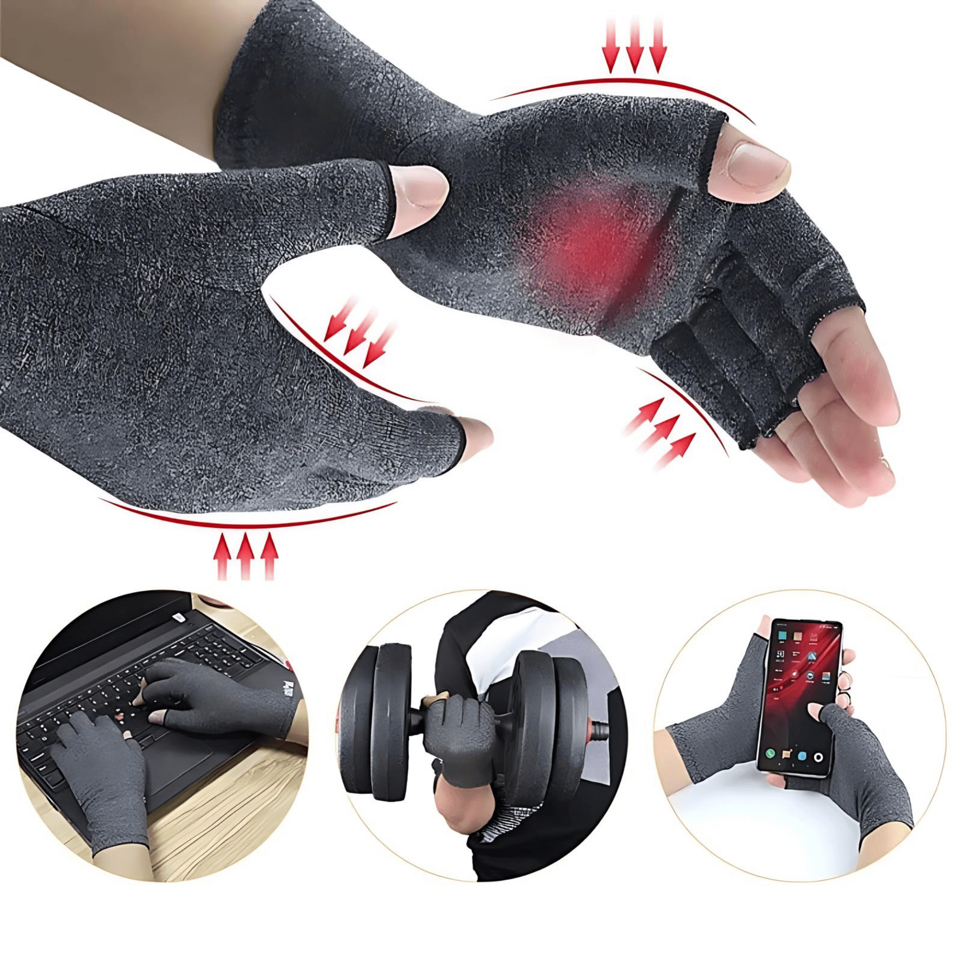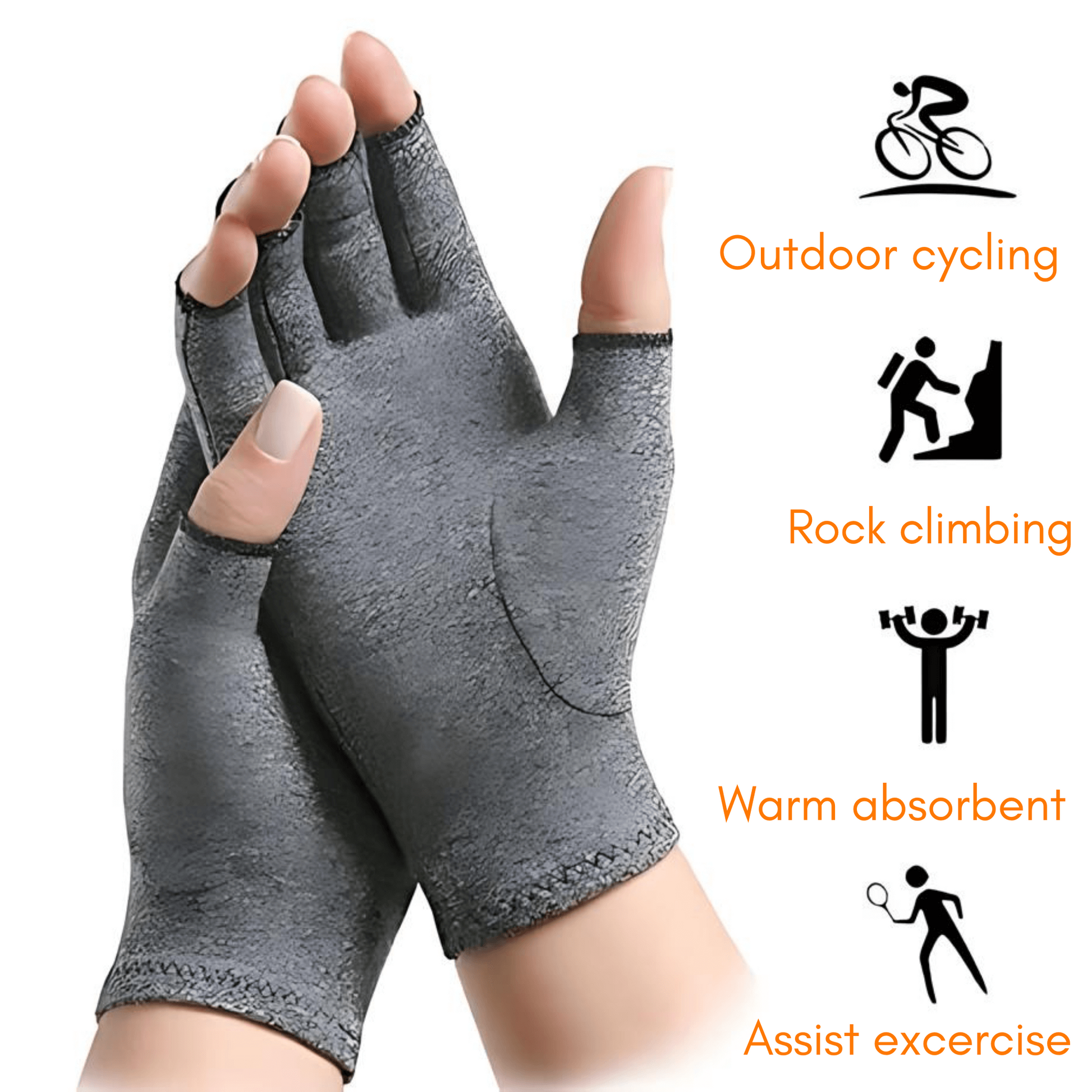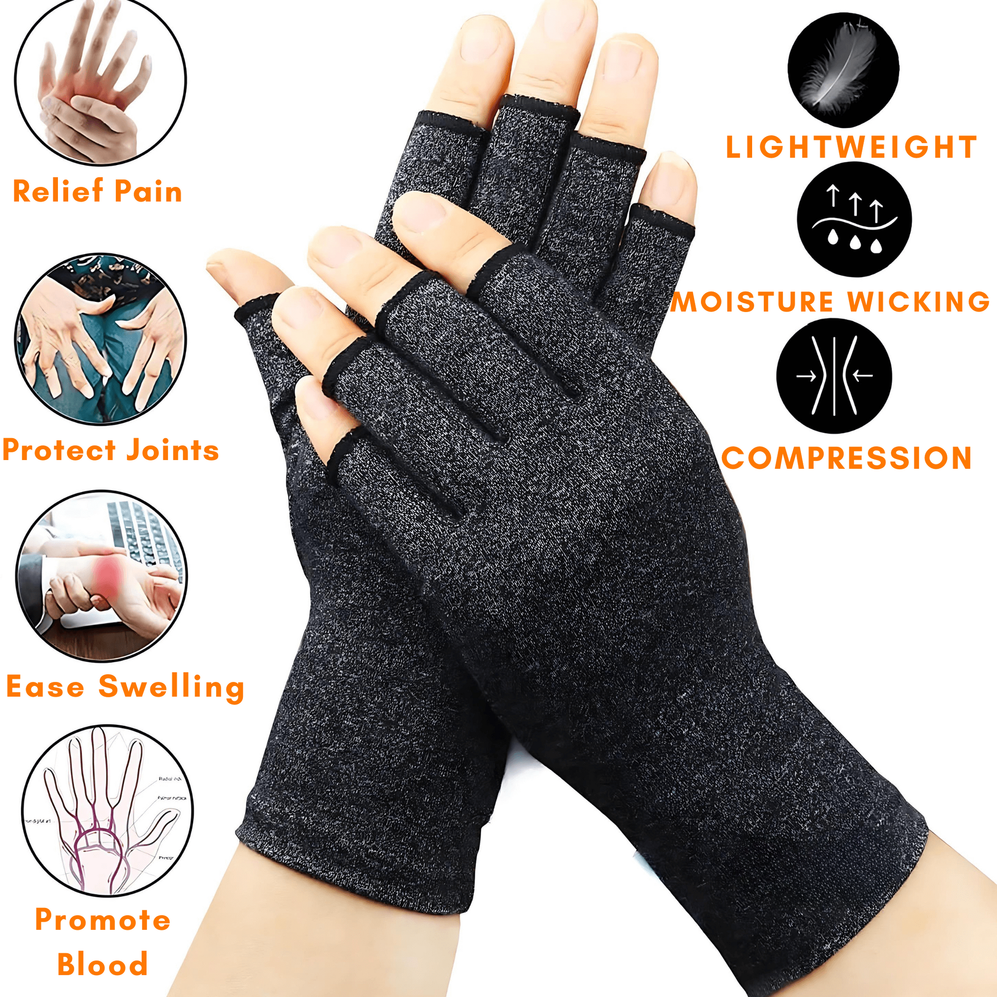 ⭐⭐⭐⭐⭐ “I've struggled with arthritis pain in my hands for years, but these gloves have been really helpful. It compressed my hands and relieves strain and stiffness. Plus, the half-finger design allows me to perform daily tasks easily, from typing to cooking. I can't recommend these gloves enough!”