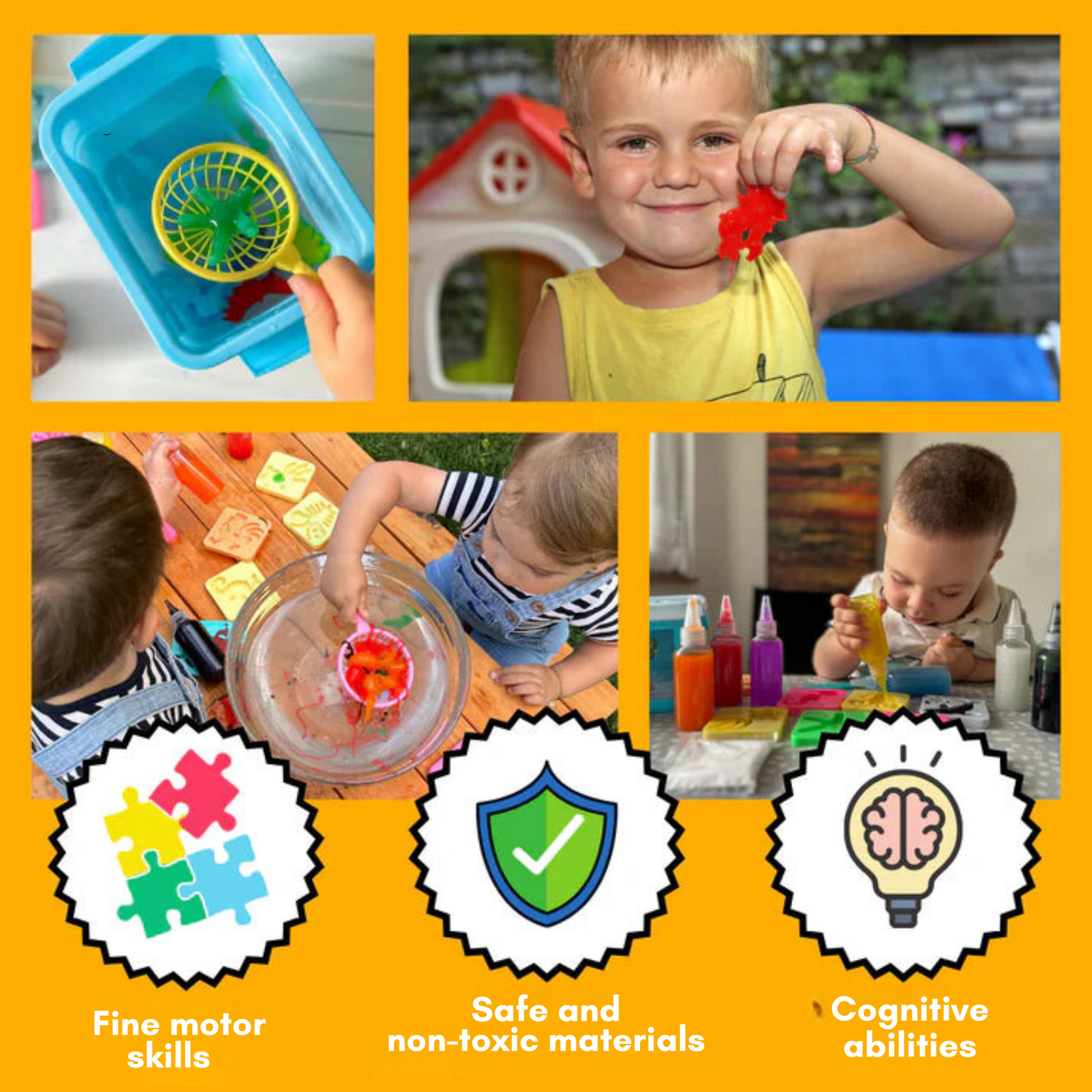 Designed with busy parents in mind, GELGENIUS is made from non-toxic materials and features a simple setup. No spills, no stress—just hours of joyful, creative play. Join thousands of parents who have found an effortless way to spark their child’s imagination.