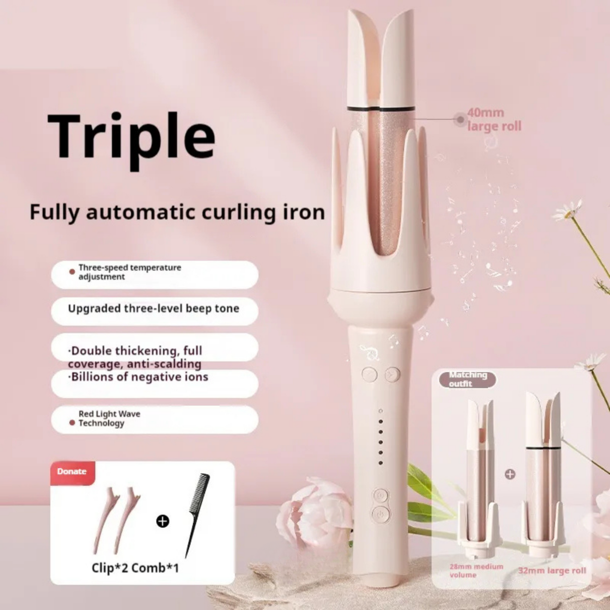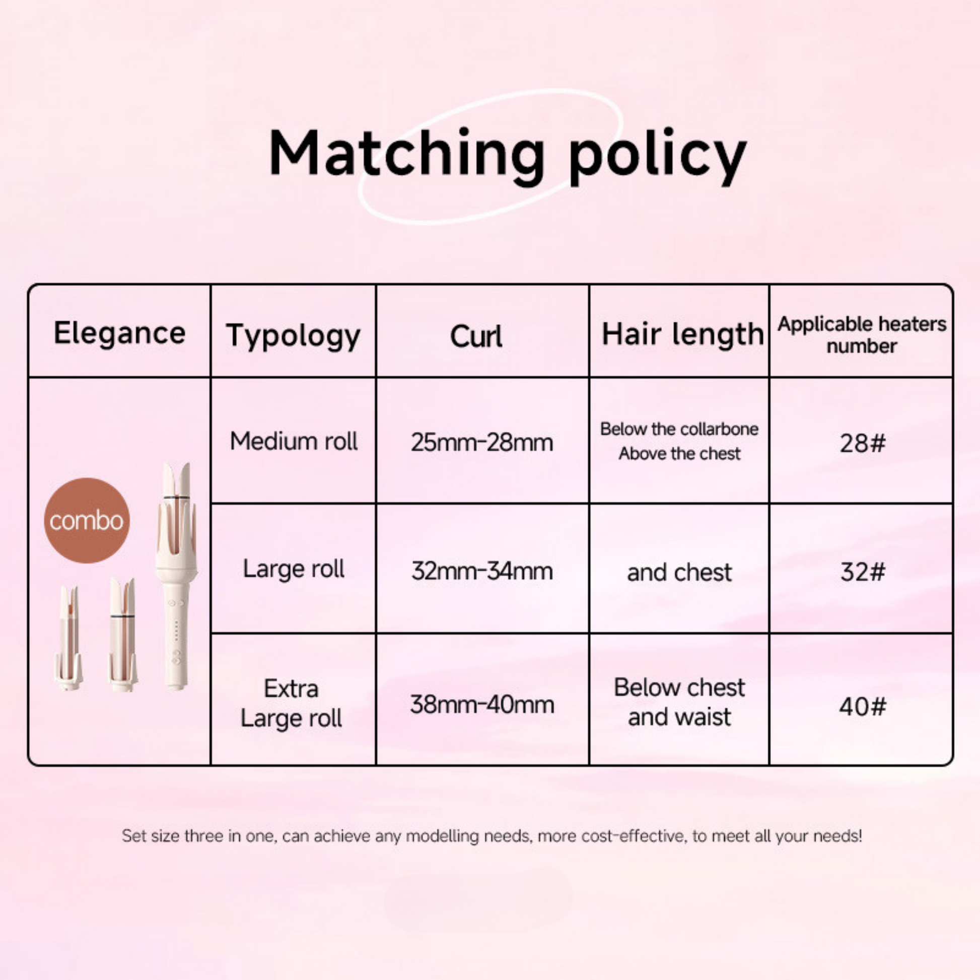 ✔️ 360° Auto-Rotating Barrel – Effortlessly curls hair in both directions