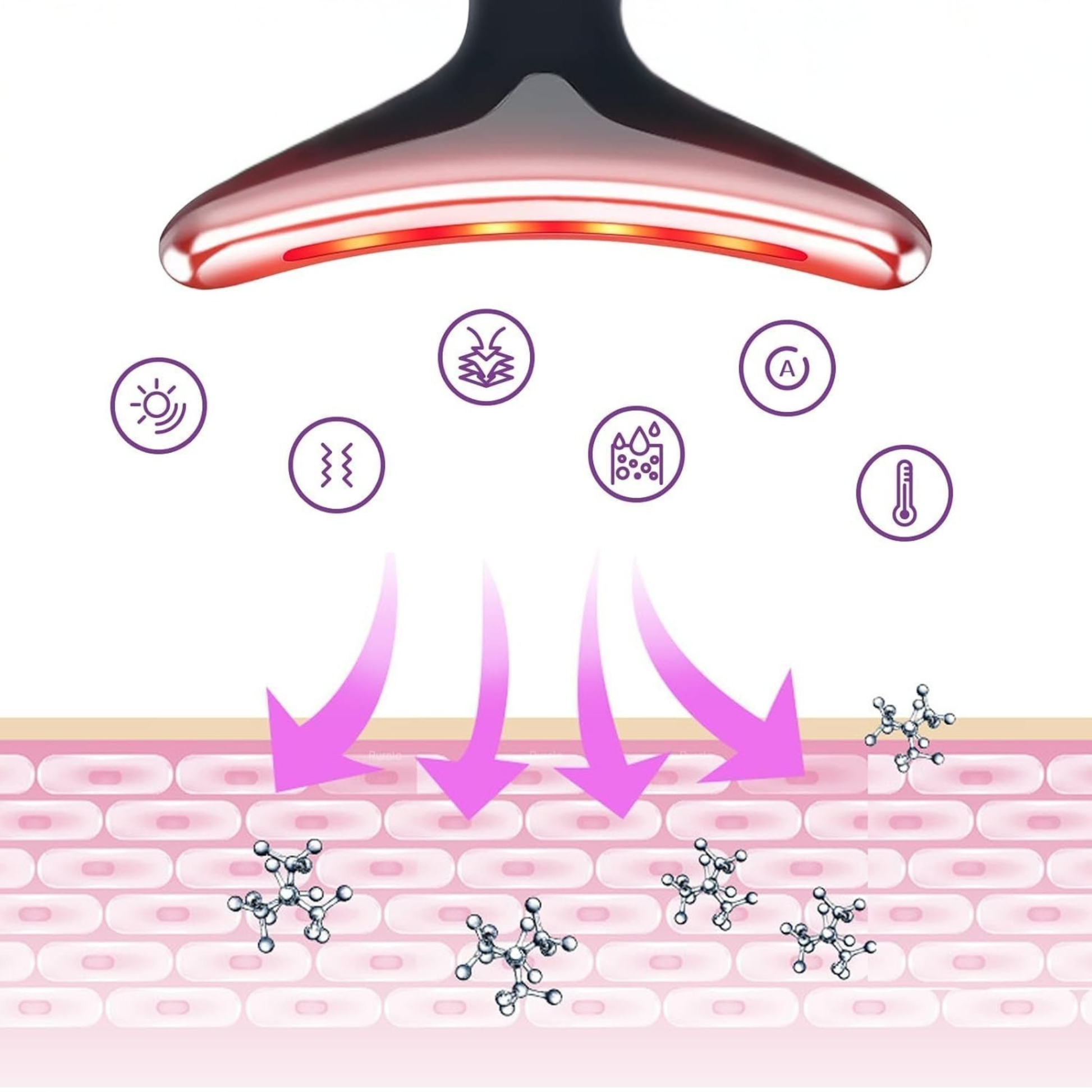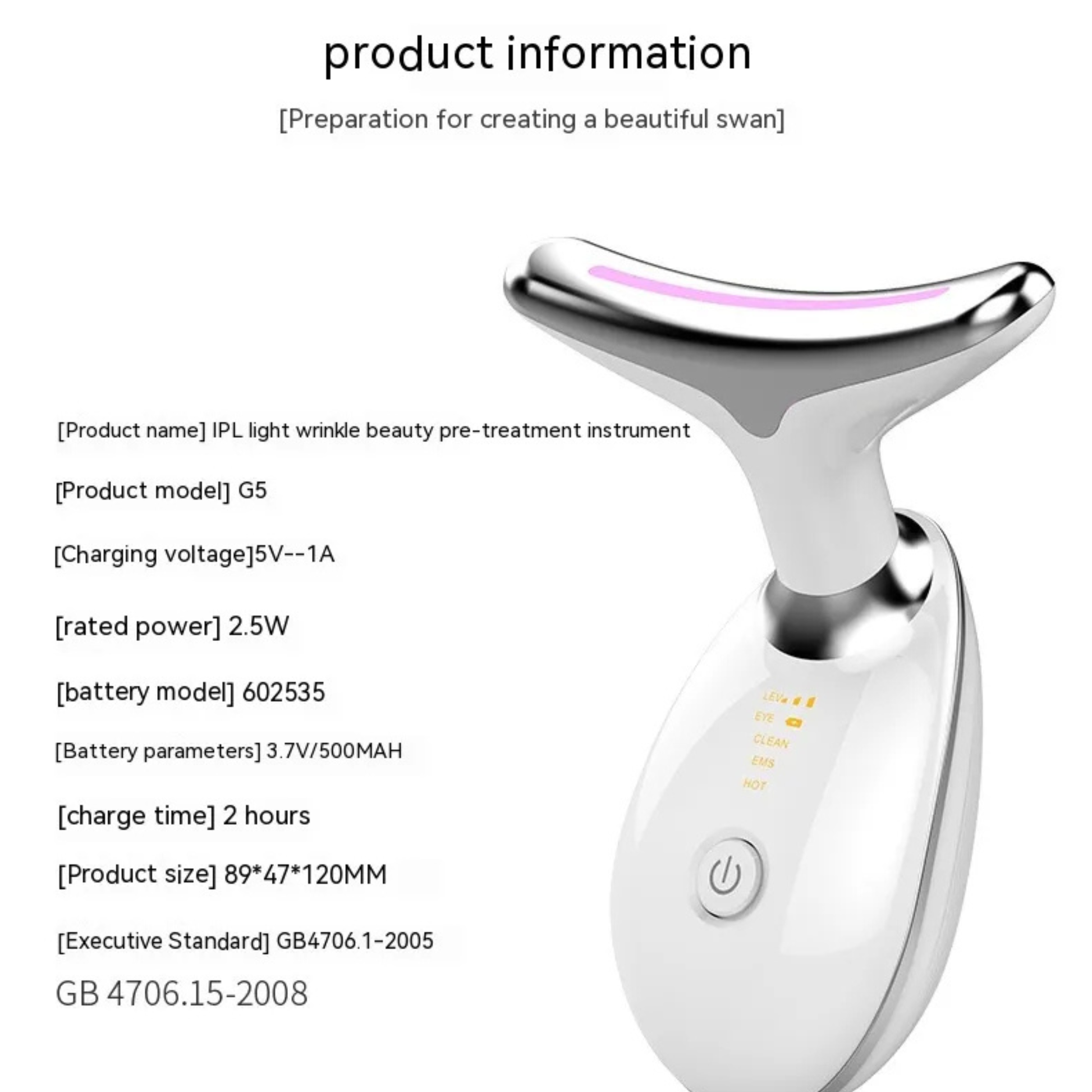 The GLEAMY device combines soothing warmth, vibration, and LED light therapy to tone and rejuvenate the skin around your neck and jawline. With just a few minutes each day, you’ll notice a gentle lift and smoother texture — without ever stepping into a salon.