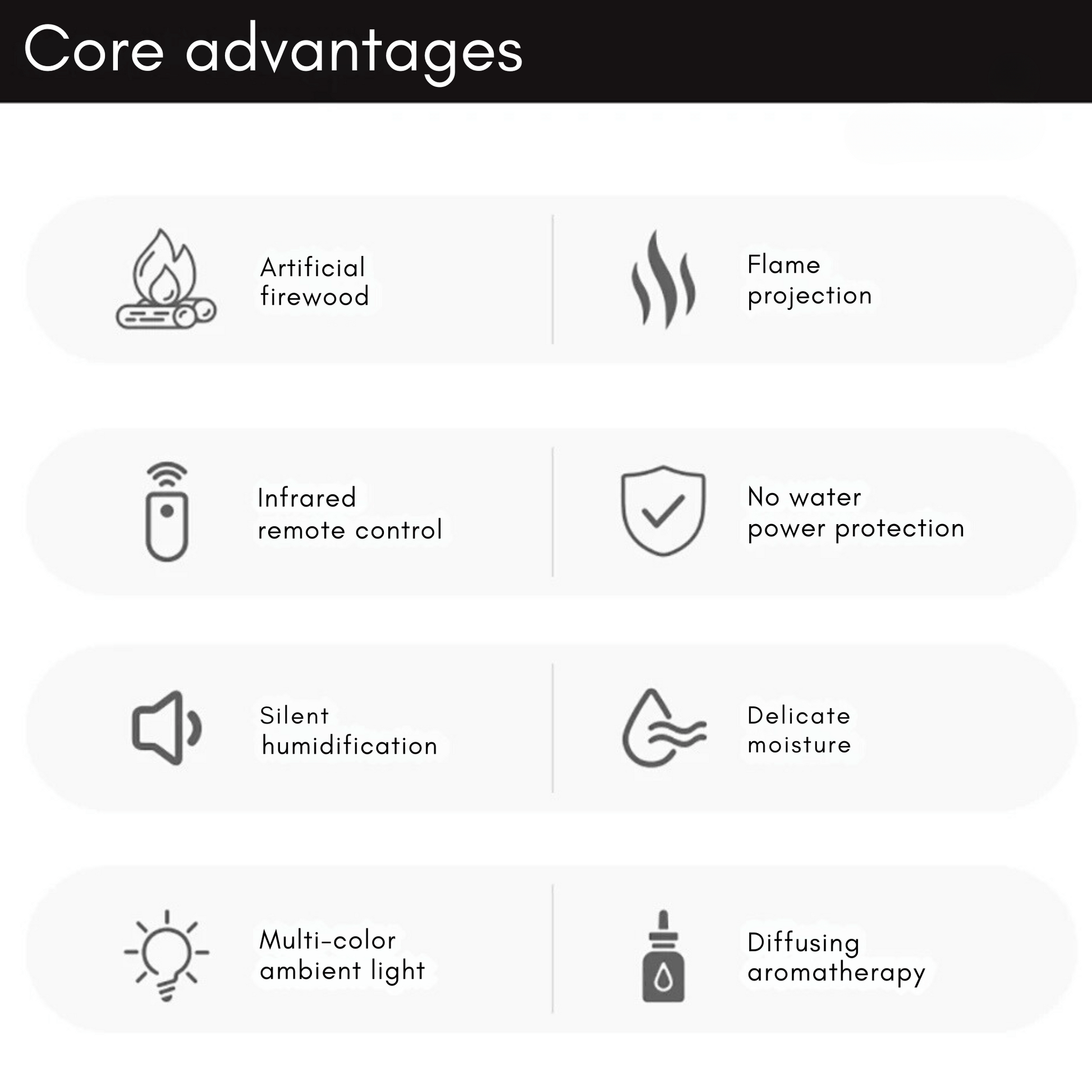 GLOWFIRE is designed to create a balanced ambiance that brings both gentle, relaxing light and a soothing scent into your space. The realistic flame effect and essential oil compatibility provide an experience that’s both visually and aromatically calming, eliminating the need for separate candles or lights.