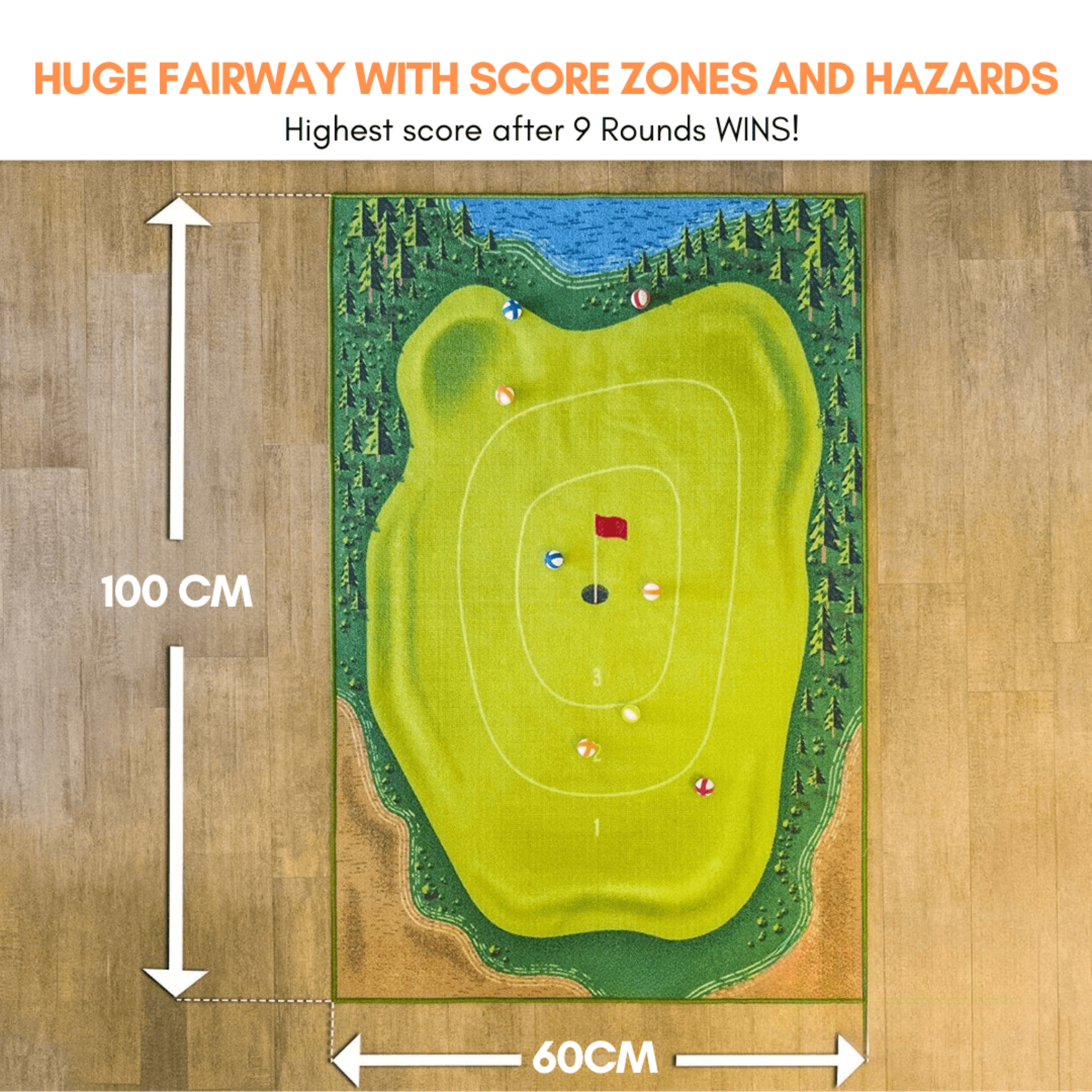 Conveniently practice golf swings anytime, anywhere. Ample space on the 6-foot play mat for optimal practice. Quick and easy setup for maximising practice time.