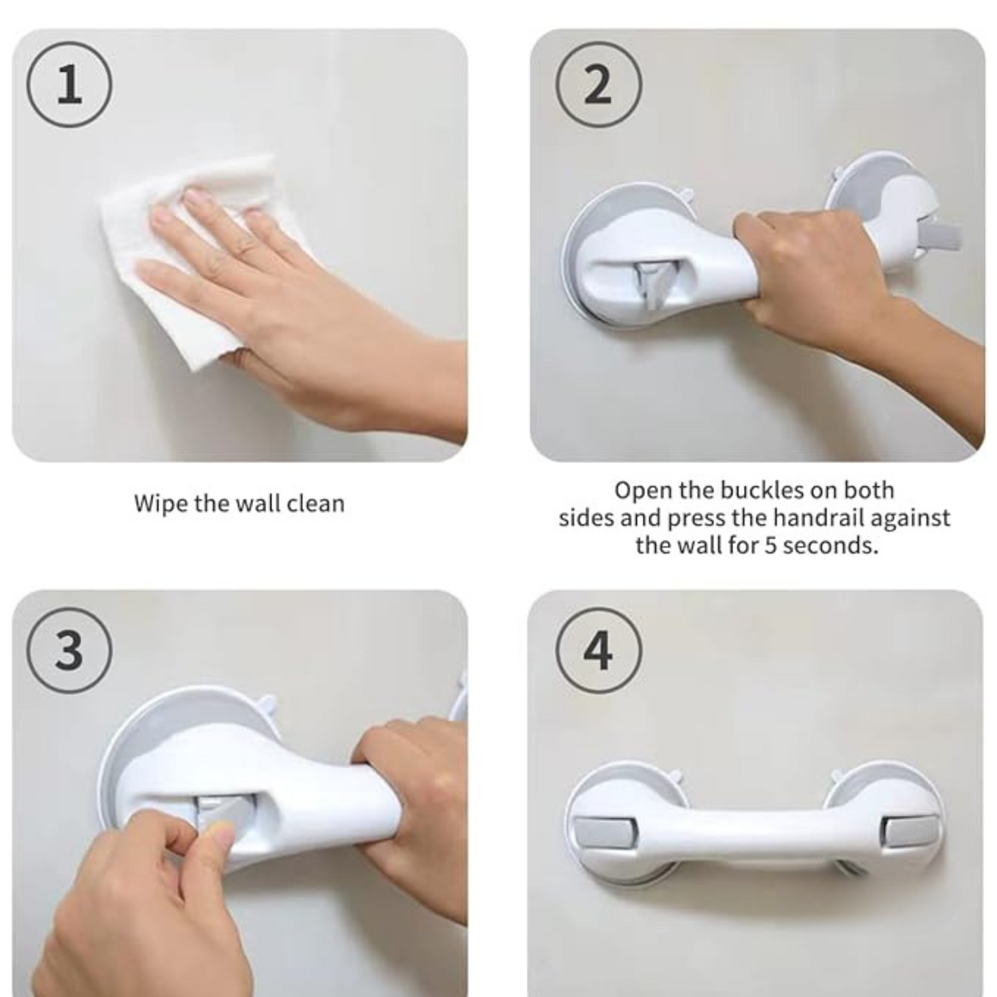 Forget complicated tools and permanent drilling—just press, lock, and secure! The HOLDSTRONG takes seconds to install and stays firmly attached to smooth surfaces, ensuring maximum grip without damaging your tiles. Plus, if you ever need to reposition it, simply unlock and move it—no residue, no hassle.