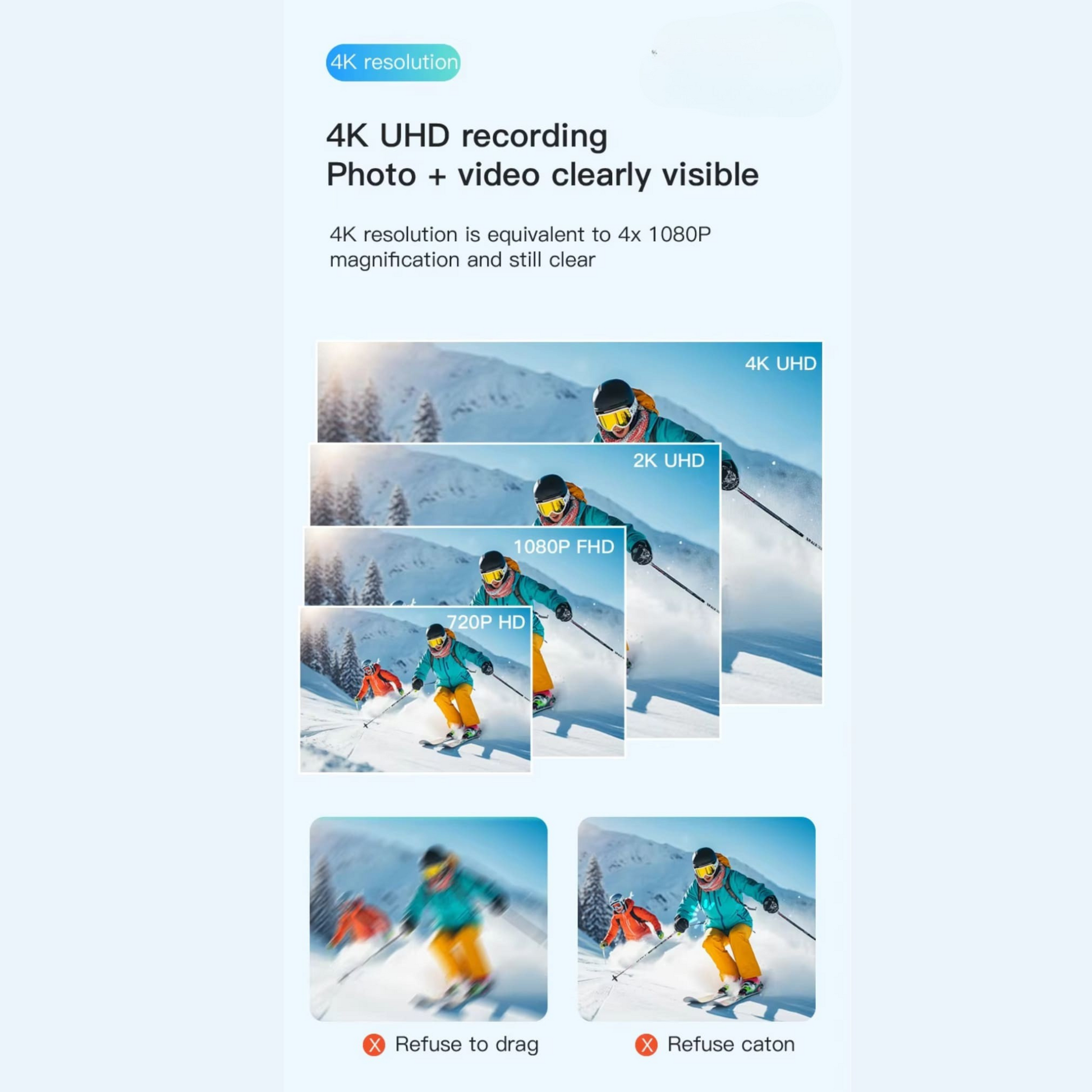 With 4x the detail of 1080p, KAPTIX records footage that’s smooth, vibrant, and ultra-sharp—even during fast movement. Whether you’re skiing, biking, or diving, you’ll notice the difference in every playback.