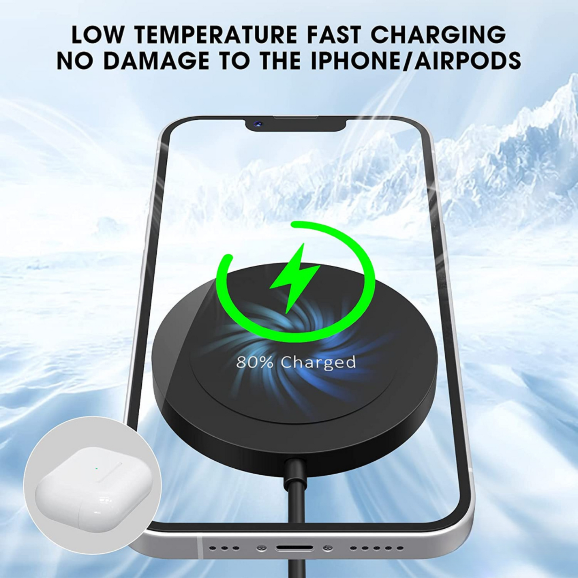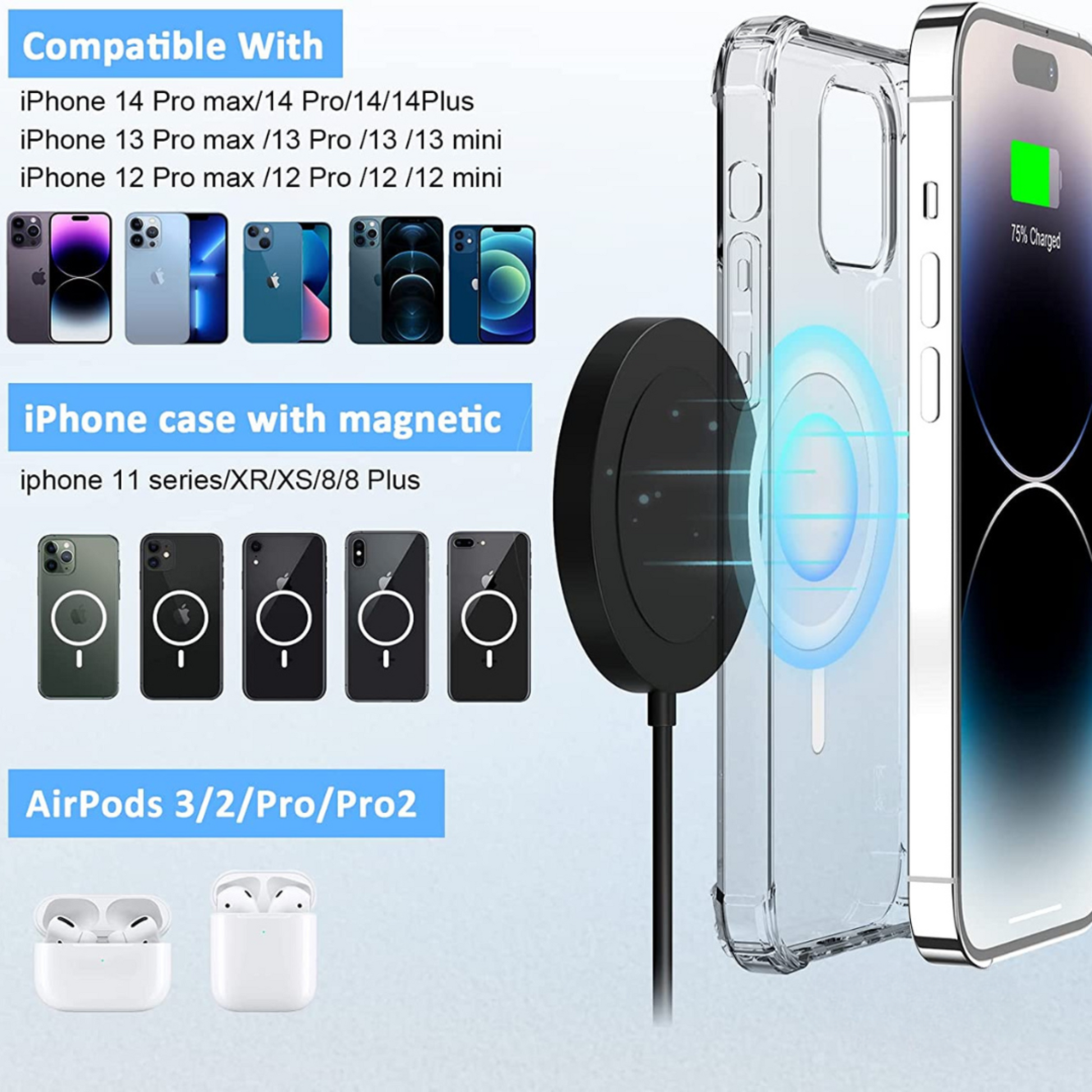 Say goodbye to the frustration of tangled wires with the CHARGEMATE. Its magnetic technology makes charging your iPhone 14/13/12 series and AirPods Pro/3 & 2 with a wireless charging case effortless.