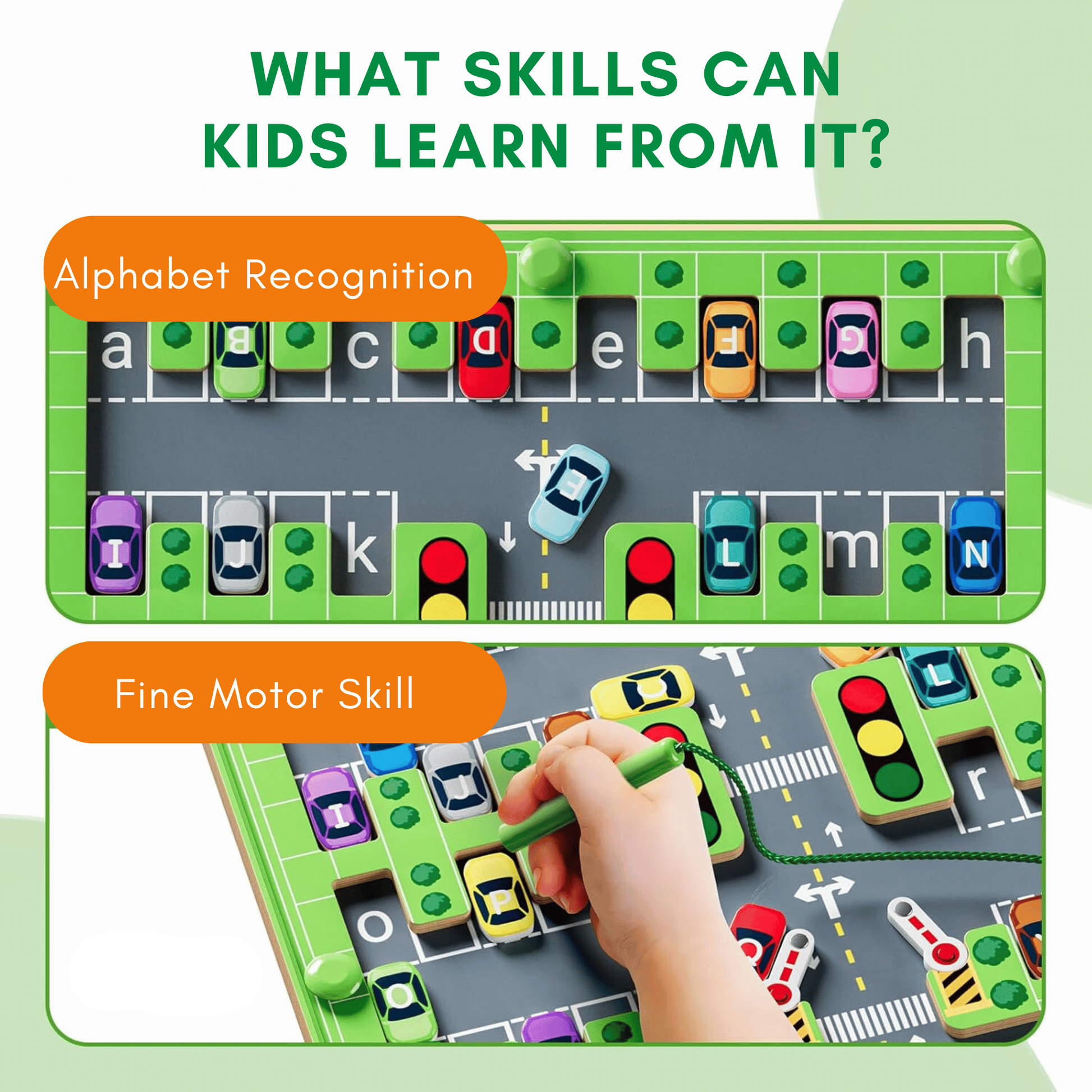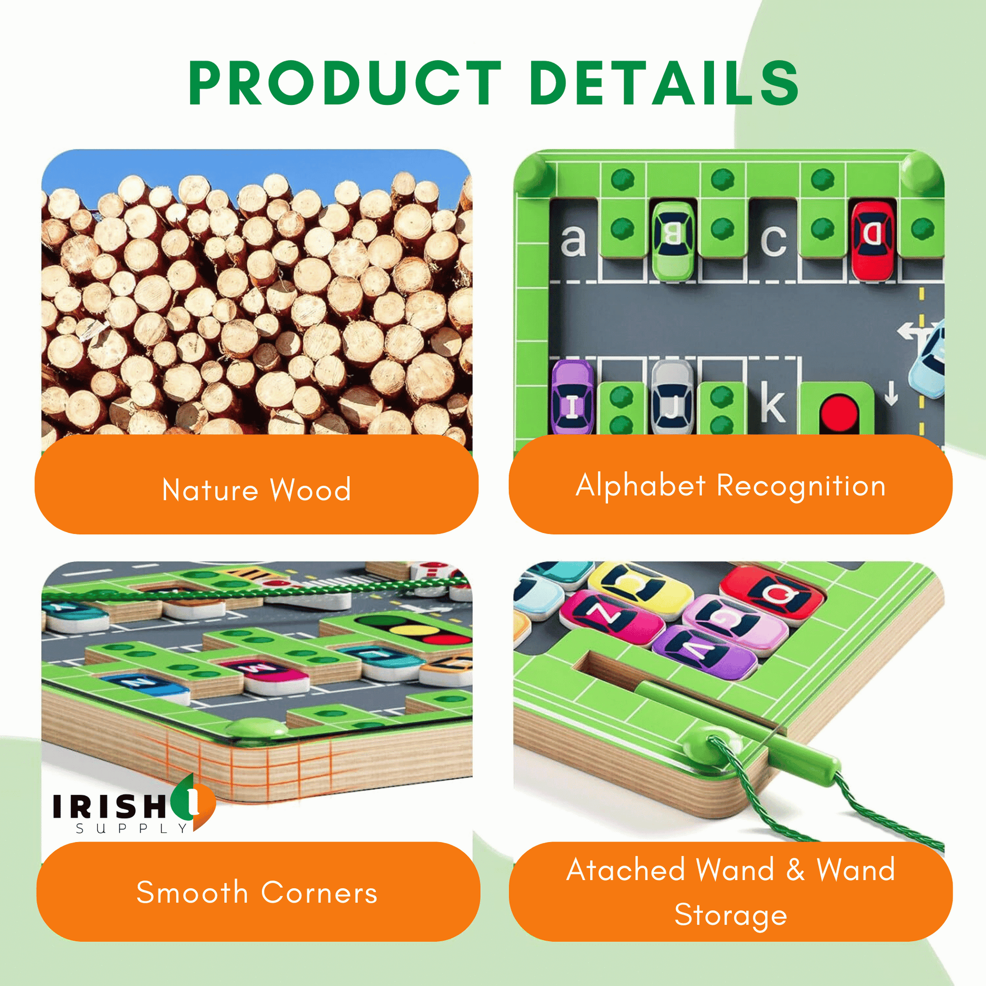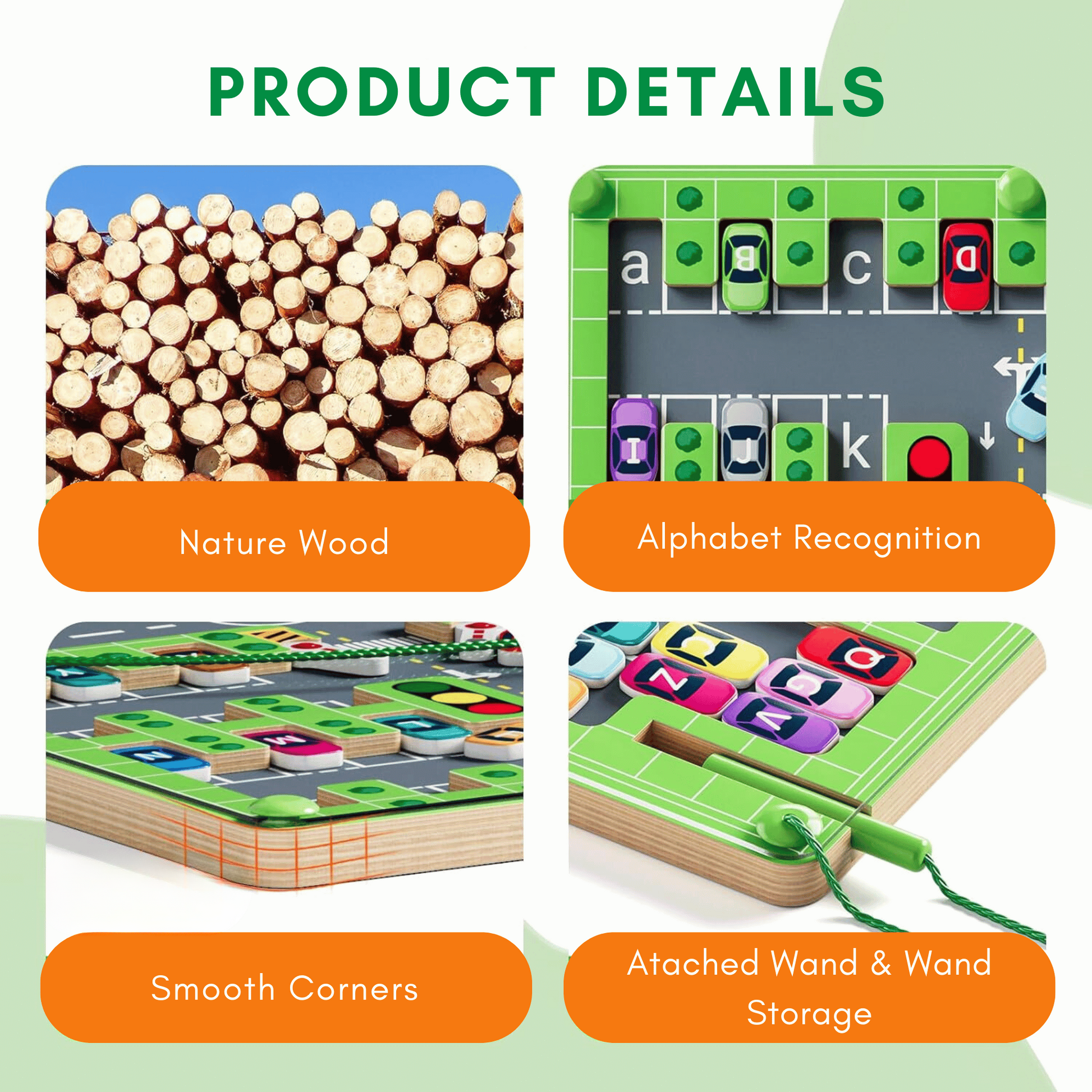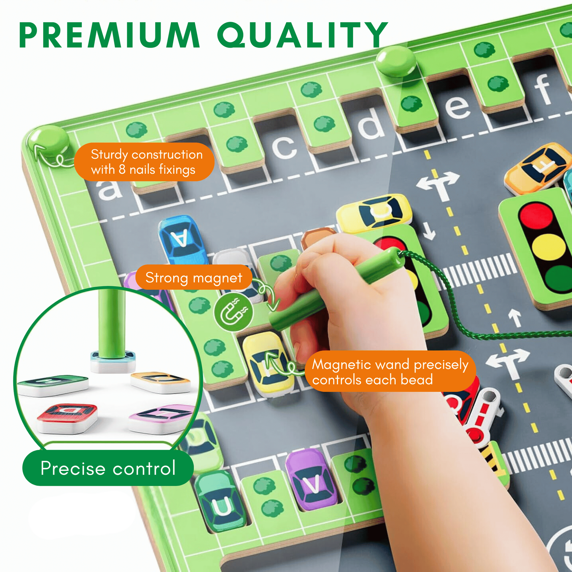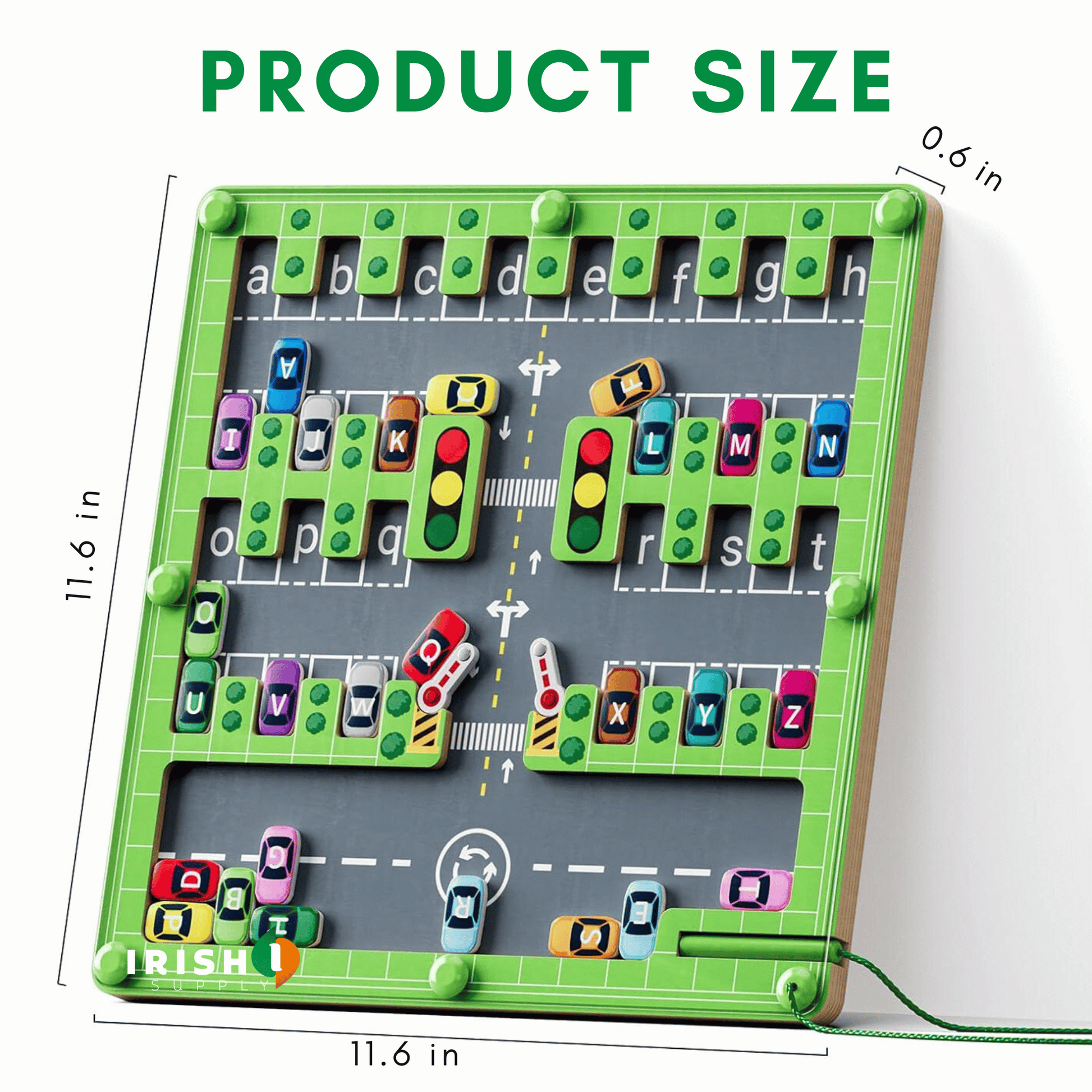 ✔️Magnetic alphabet maze with colorful cars for interactive learning
