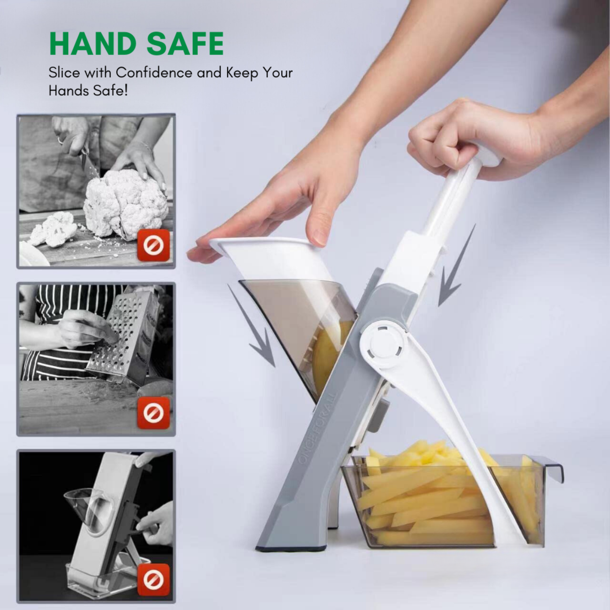 No more fear of accidental cuts! This slicer comes with built-in safety features, including a hand guard and non-slip base, so you can slice with confidence. Plus, the detachable, easy-to-clean design means no more struggling with food stuck in hard-to-reach places. Just rinse and store—no mess, no stress.