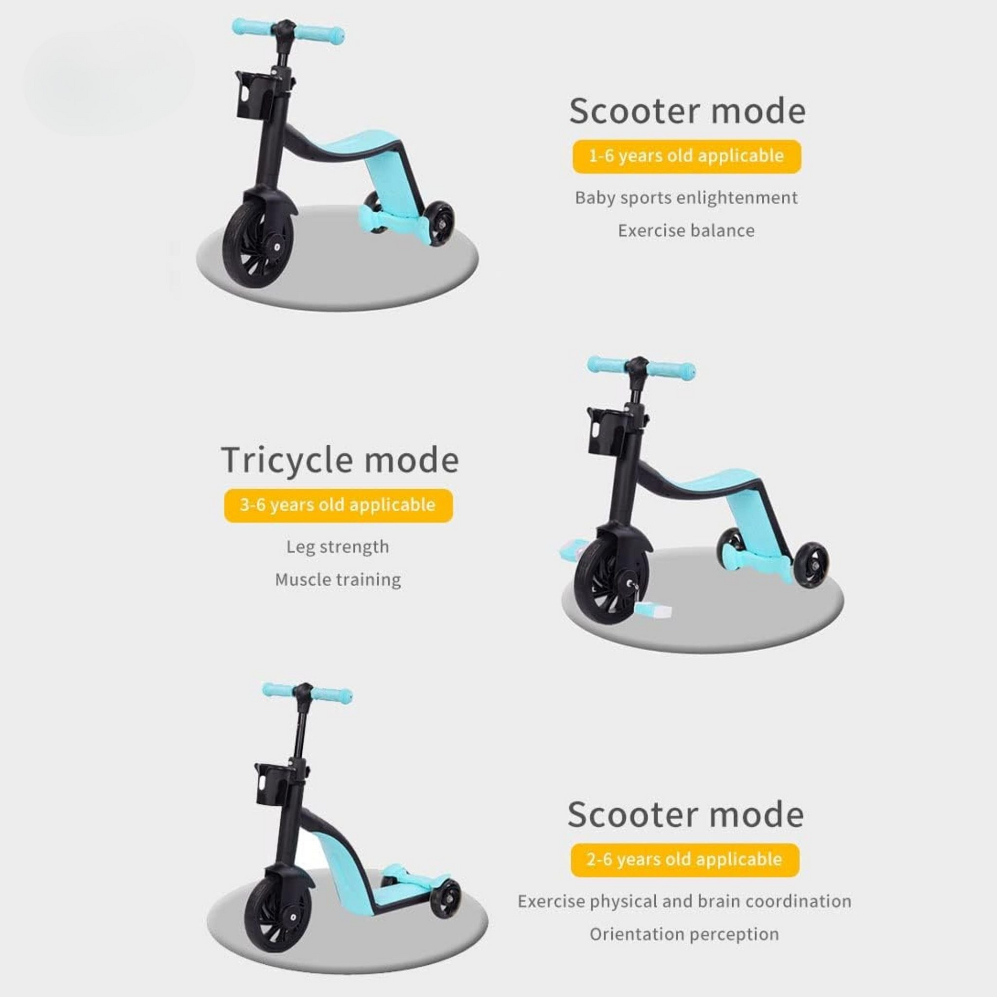 This multifunctional trike transforms through seven distinct riding modes, supporting your child from 12 months to 5 years. From stroller to tricycle, it adapts effortlessly—eliminating the need to buy multiple ride-ons and saving you time and money.
