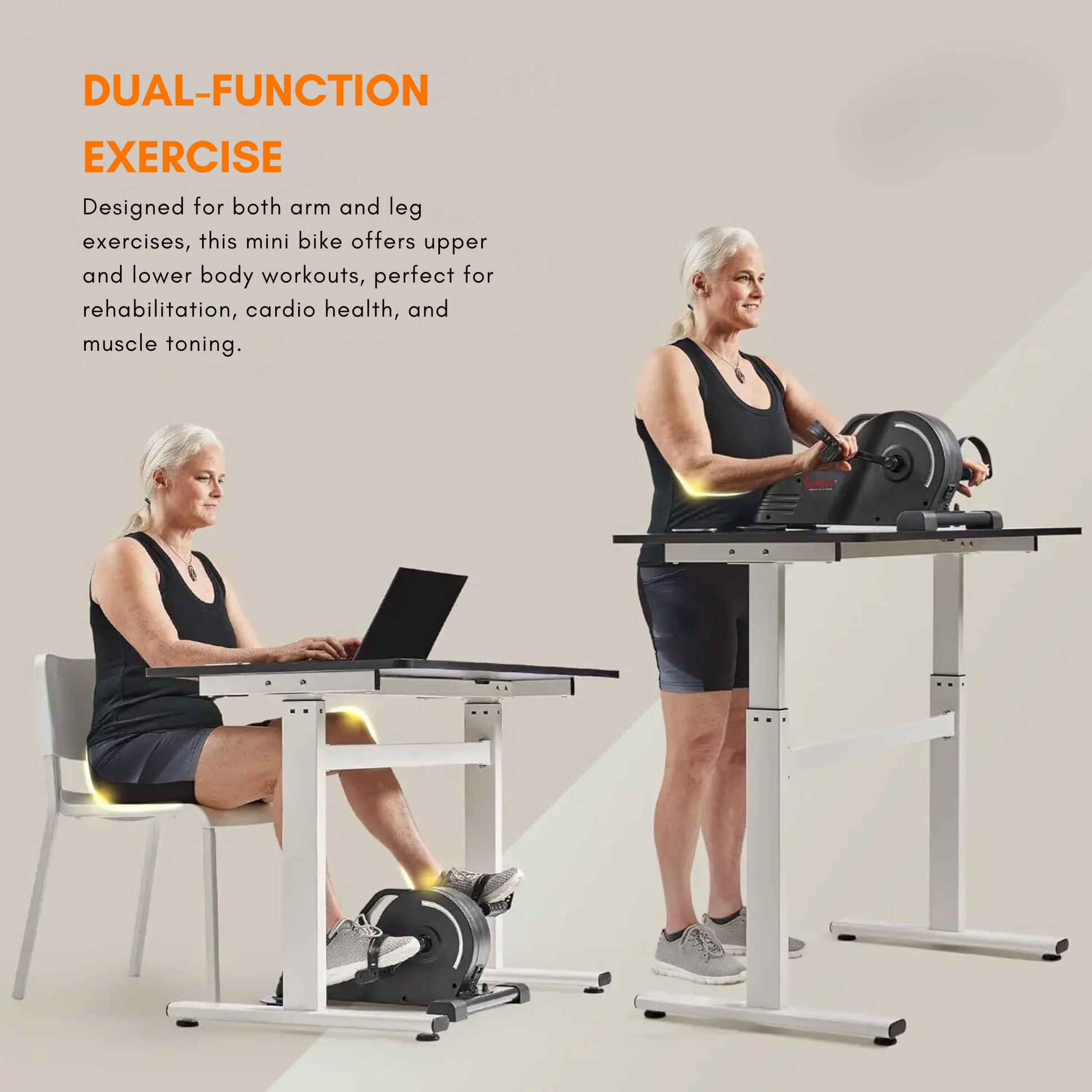 The MOVEMAX Dual Function Fitness Cycle transforms sedentary time into active time by offering low-impact pedaling for arms and legs. It promotes circulation, relieves stiffness, and helps you stay fit without ever leaving your desk or home. Its ergonomic design ensures a seamless and enjoyable workout experience.
