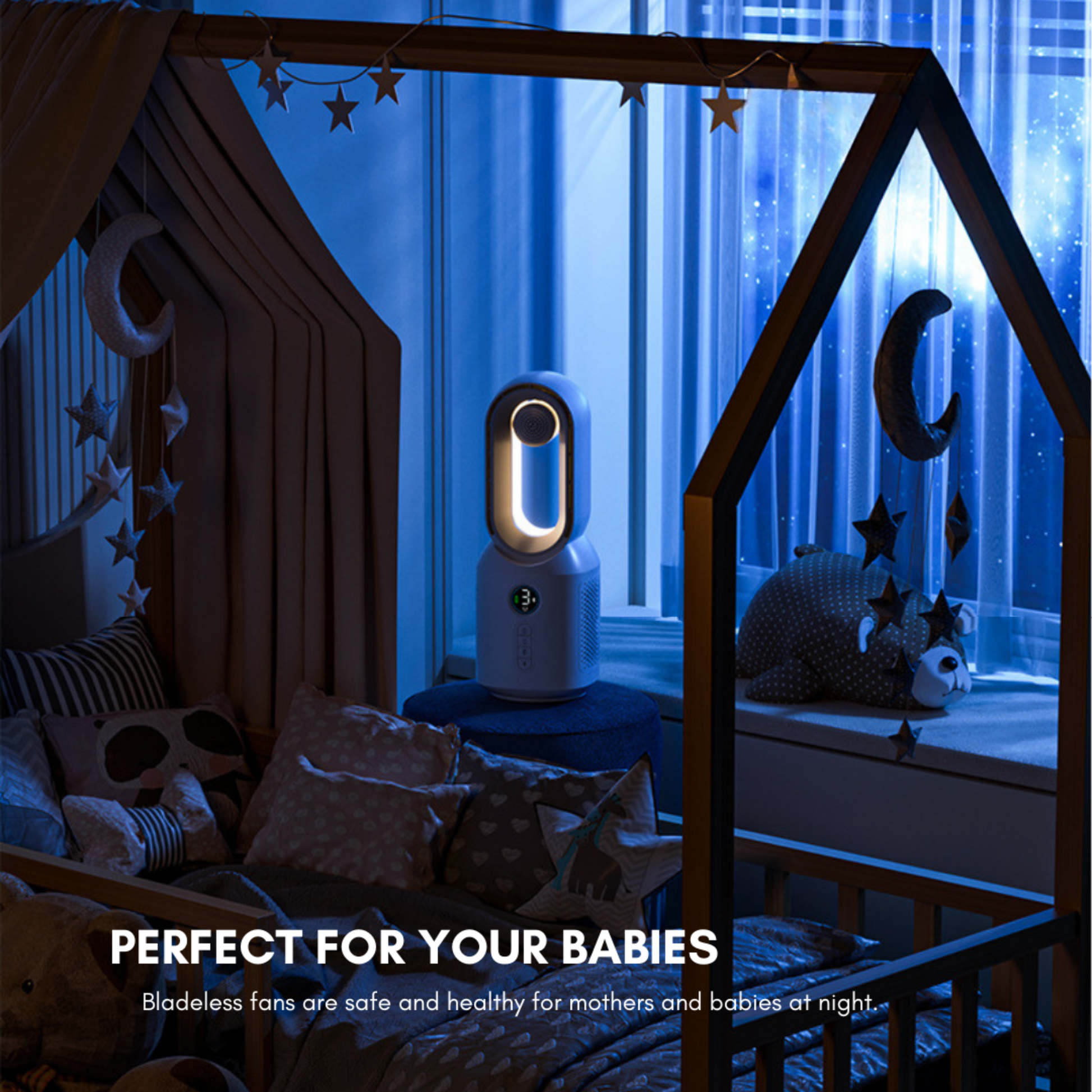 ✔ Bladeless fan for enhanced safety and peace of mind.