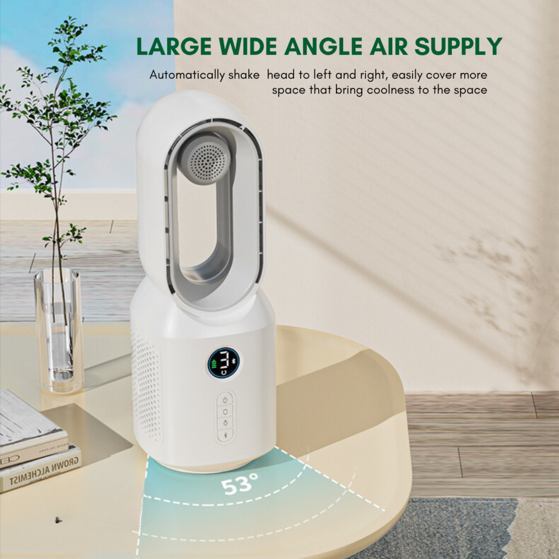 ✔ Automatic shaking head for wide-angle air supply and increased coverage.