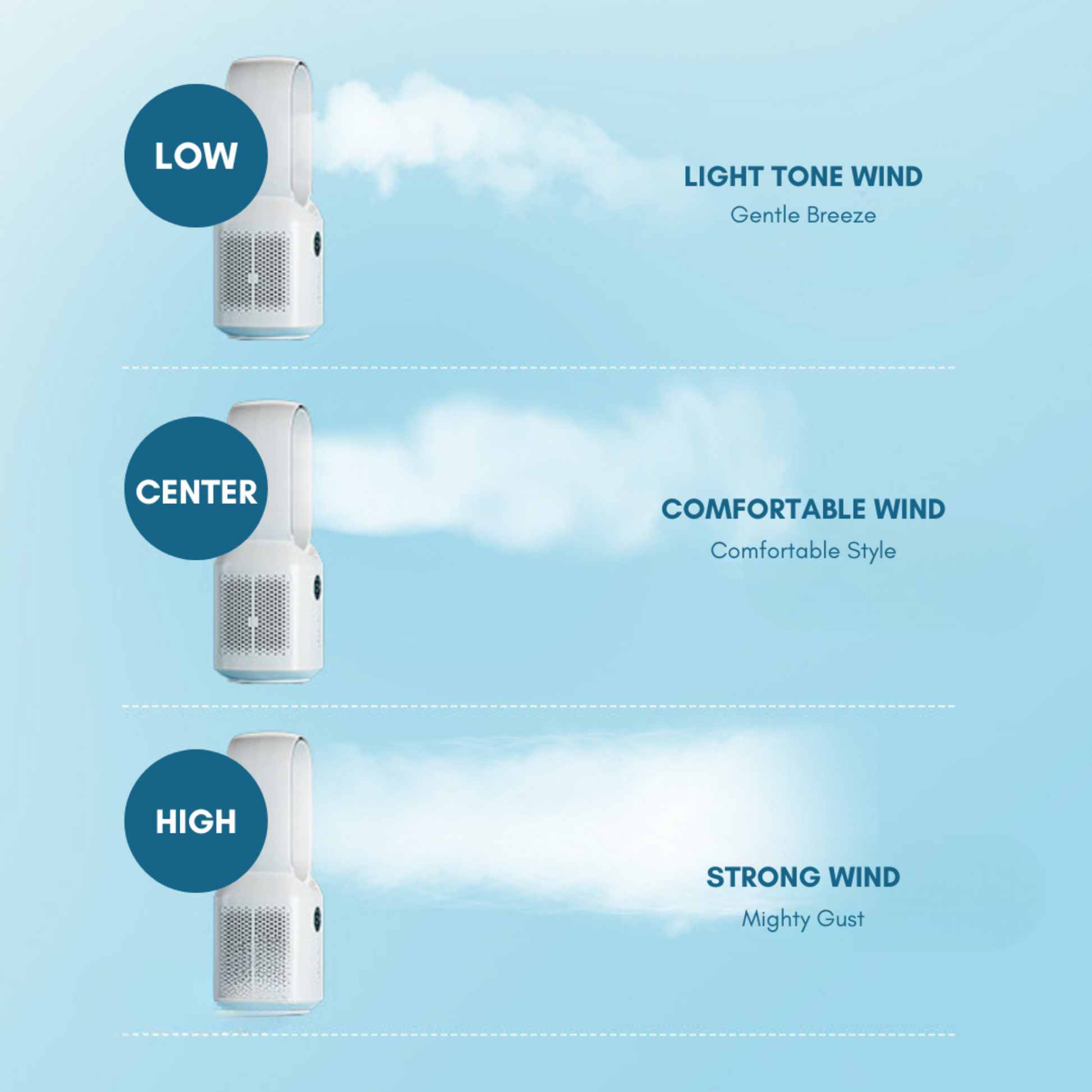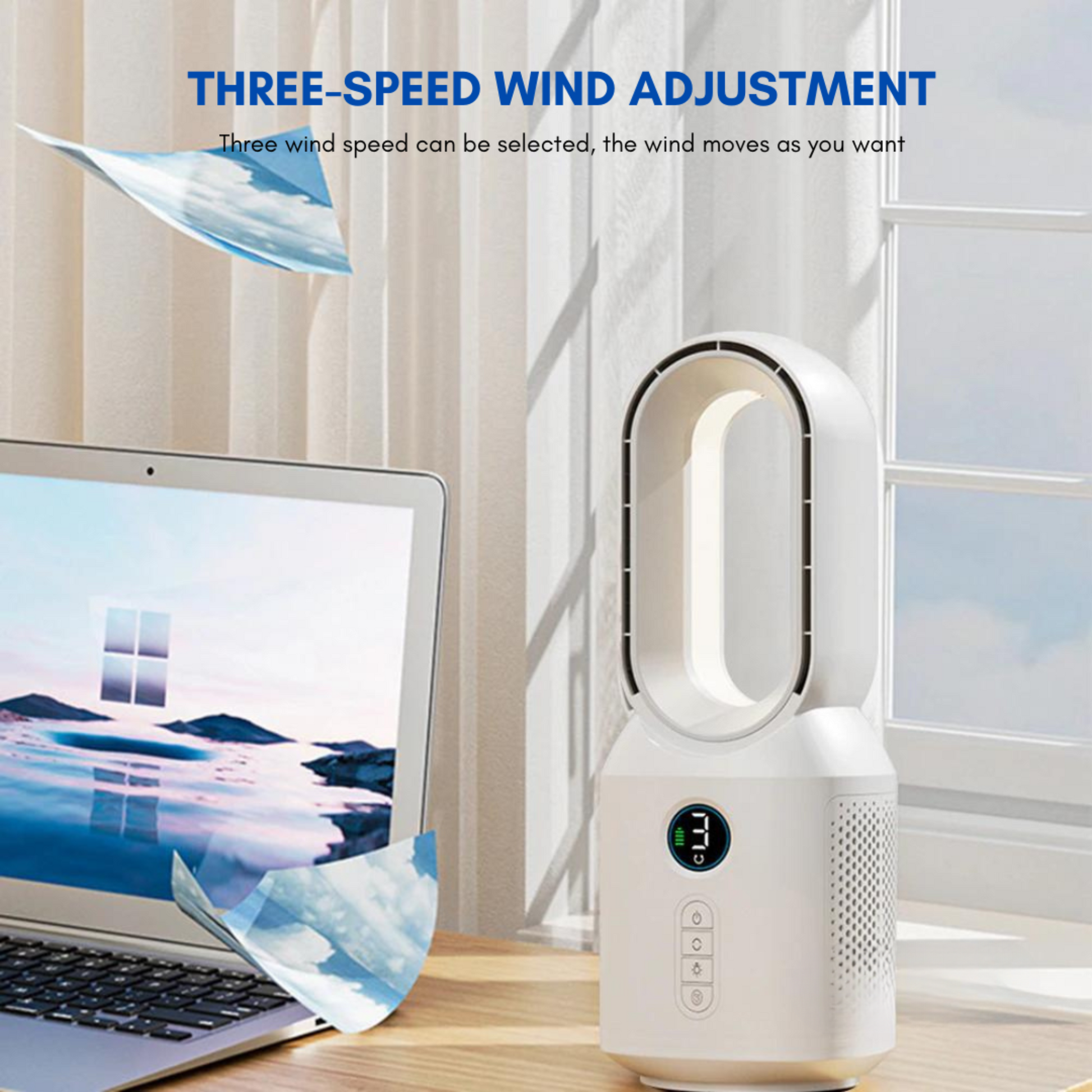 ✔ Three-speed wind adjustment for personalized comfort.