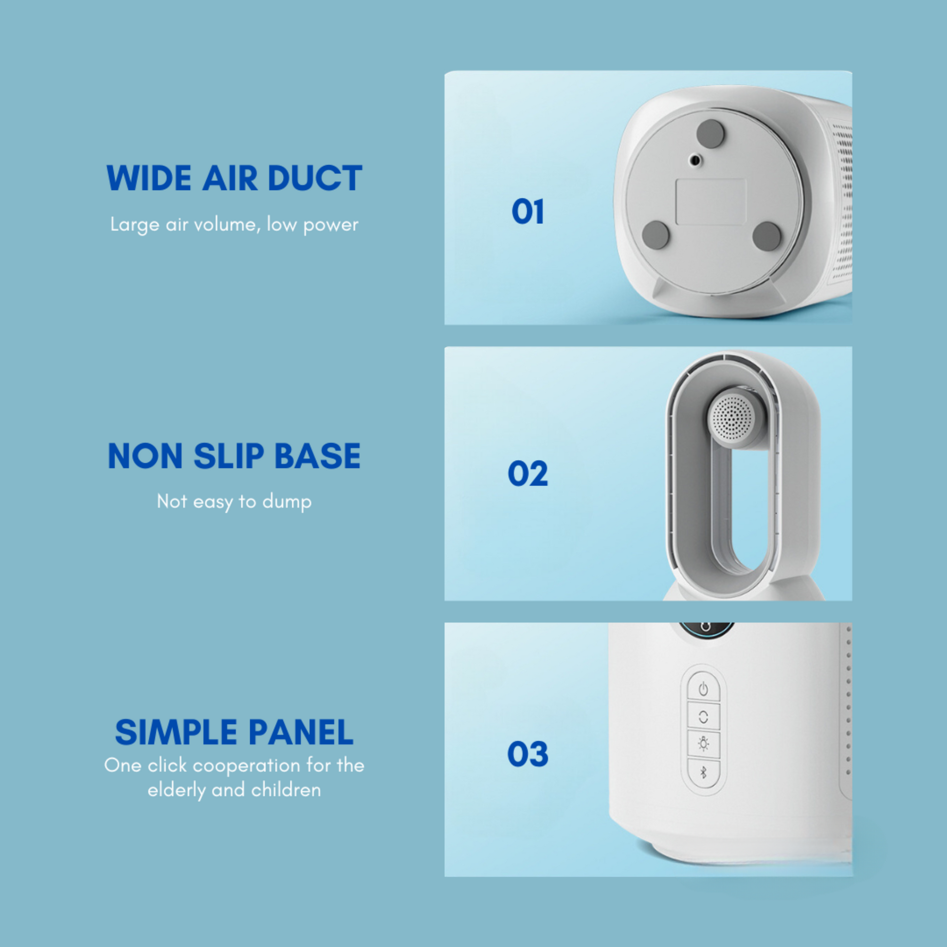 Experience the peace of mind that comes with a bladeless fan design. The absence of blades eliminates the risk of accidental injuries or entangled hair, making it safer for you and your loved ones. Enjoy the refreshing breeze without any worries.