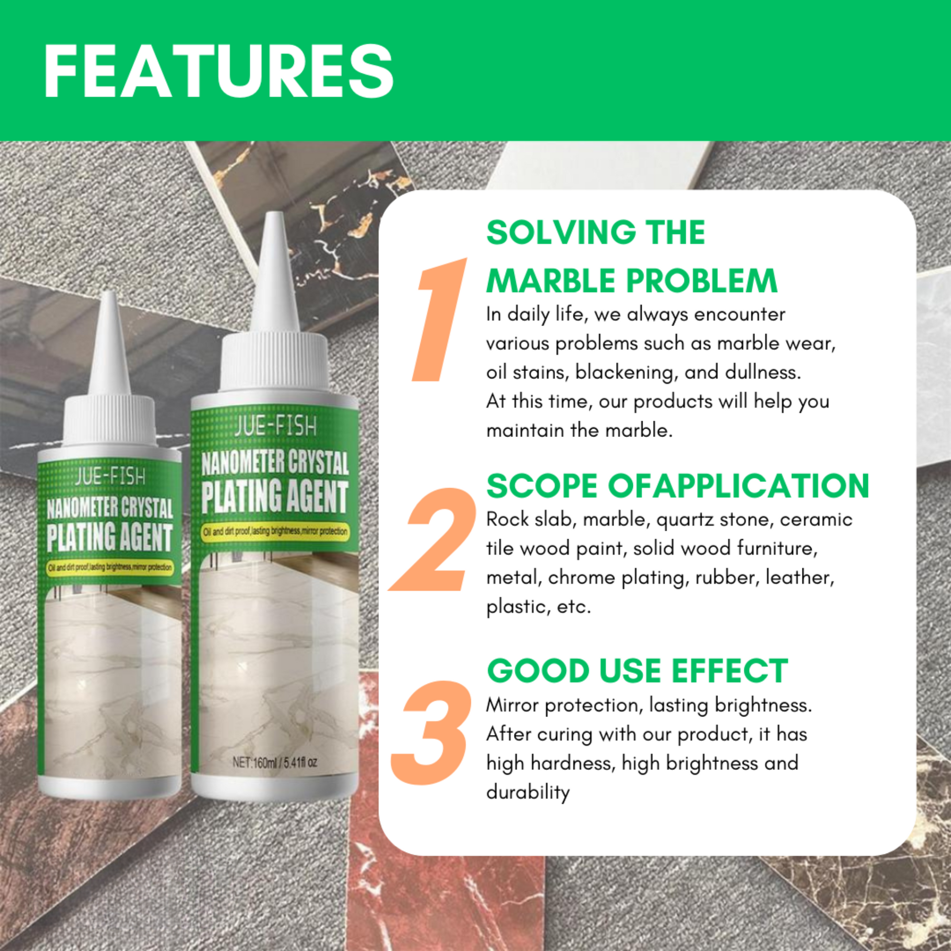 ✔️ Nanoparticles create a protective barrier, penetrating deep into the pores to remove scratches and stains while improving the overall surface protection