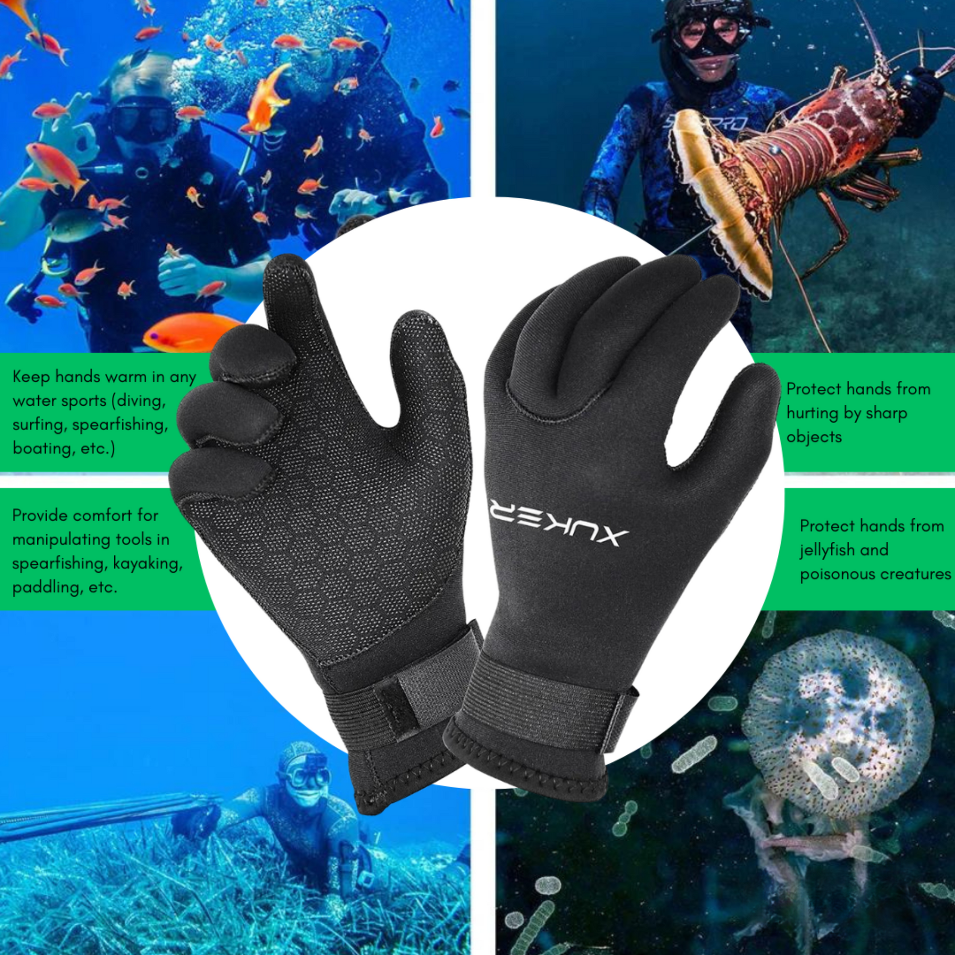 ✔️ Suitable for various water sports like snorkeling, swimming, surfing, and more, providing reliable hand protection and grip