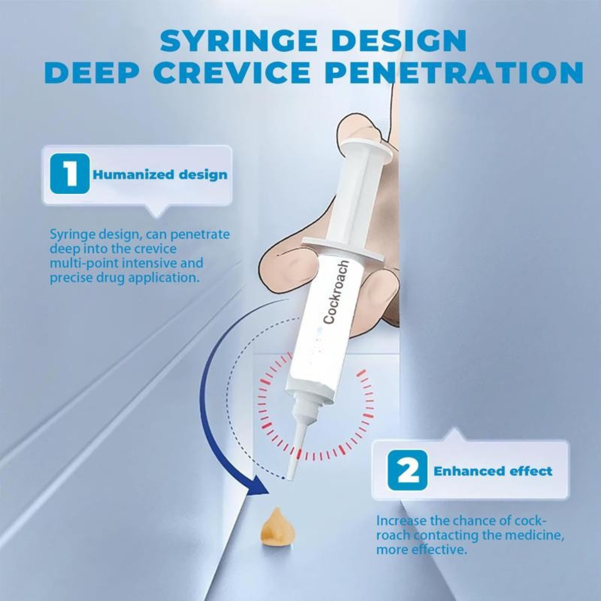 No spraying chemicals around food surfaces. No messy traps. Simply place small pea-sized dots of gel in areas where cockroaches hide — under sinks, behind appliances, or in cupboard corners. The precision applicator makes it quick, clean, and discreet.