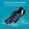 With a flexible top and 6 drainage holes on each bottom, our AQUASTRIDE shoes offer a double drainage system. These specially designed features allow water to quickly drain from the soles while preventing sand from entering. Say goodbye to soggy shoes and enjoy a hassle-free swimming experience.