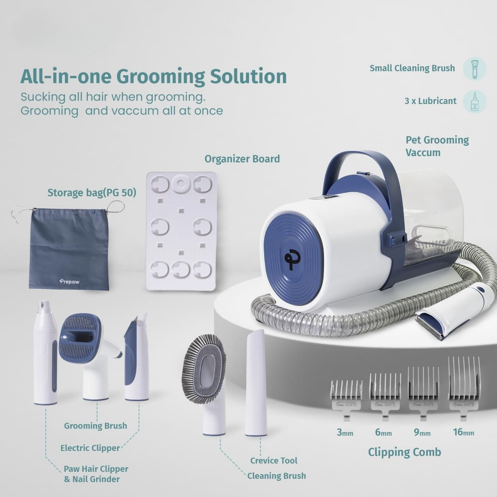 ✔️ Powerful 11000Pa Suction – Captures 99% of pet hair while grooming