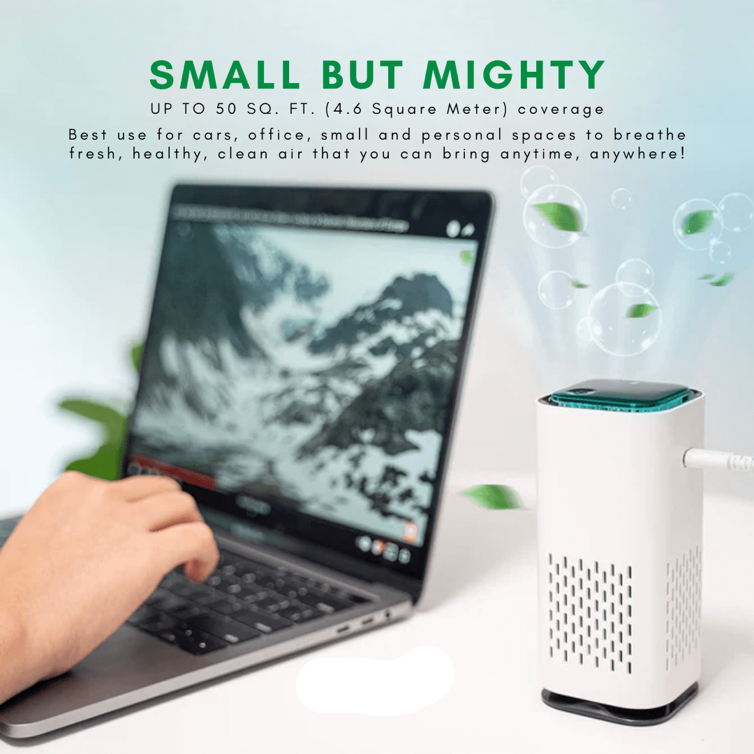 Experience cleaner air anywhere you go. The FURIFY Portable Air Purifier is compact and versatile, suitable for small spaces like cars, bedrooms, offices, and more. Take it with you wherever you need purified air.