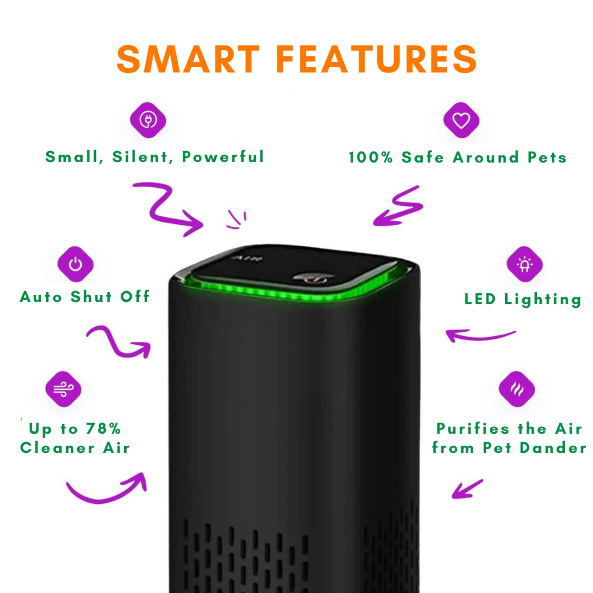 ⭐⭐⭐⭐⭐ "This portable air purifier has been great for me and my pets. No more worrying about pet odours in the car or home. It's a breath of fresh air for all of us!"