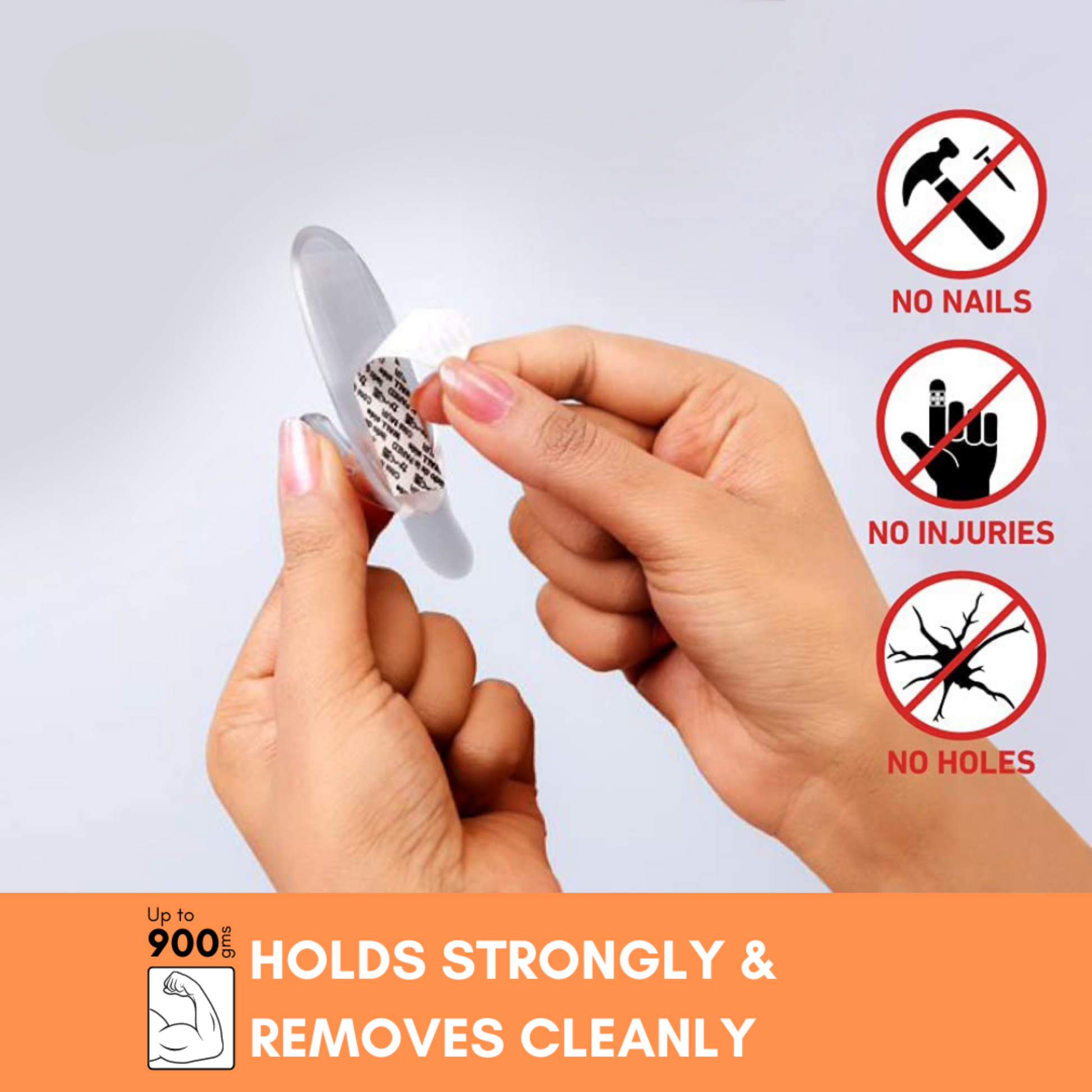 ✔️ Clear hooks and strips that blend in seamlessly with the decor
