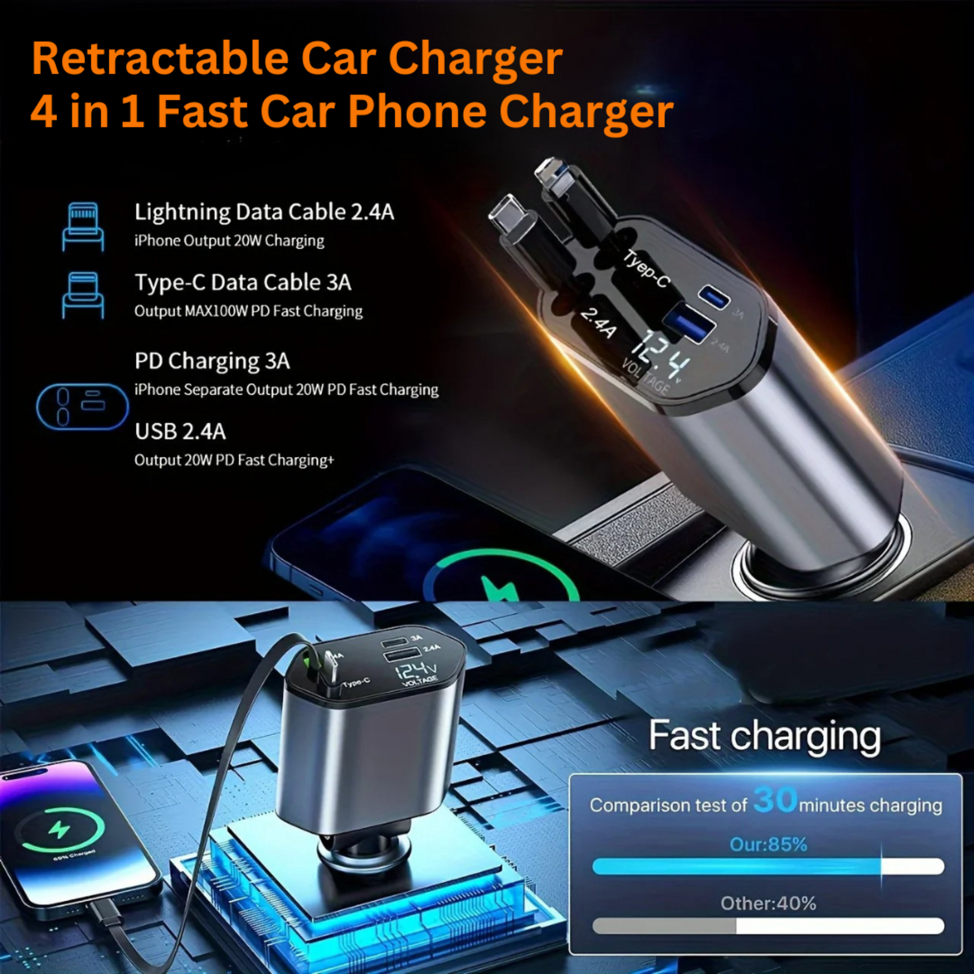 ✔️ Retractable Cable Design: Minimizes mess and keeps your car interior organized.