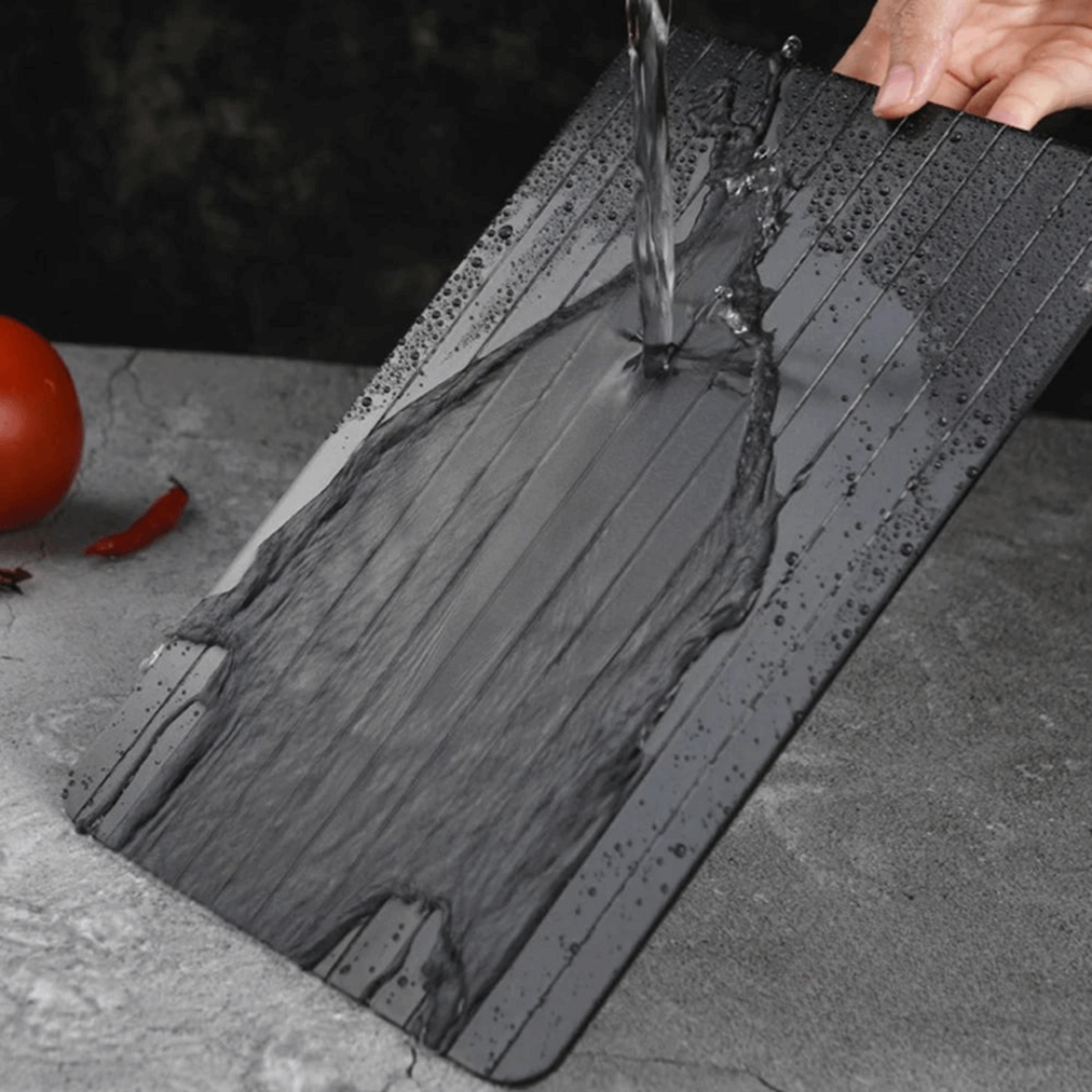 Made of an alloy that’s 20.000 times more conductive than regular metal, DEFROA kicks into gear quickly. Leave your frozen goods on it, and watch the ice turn into water!