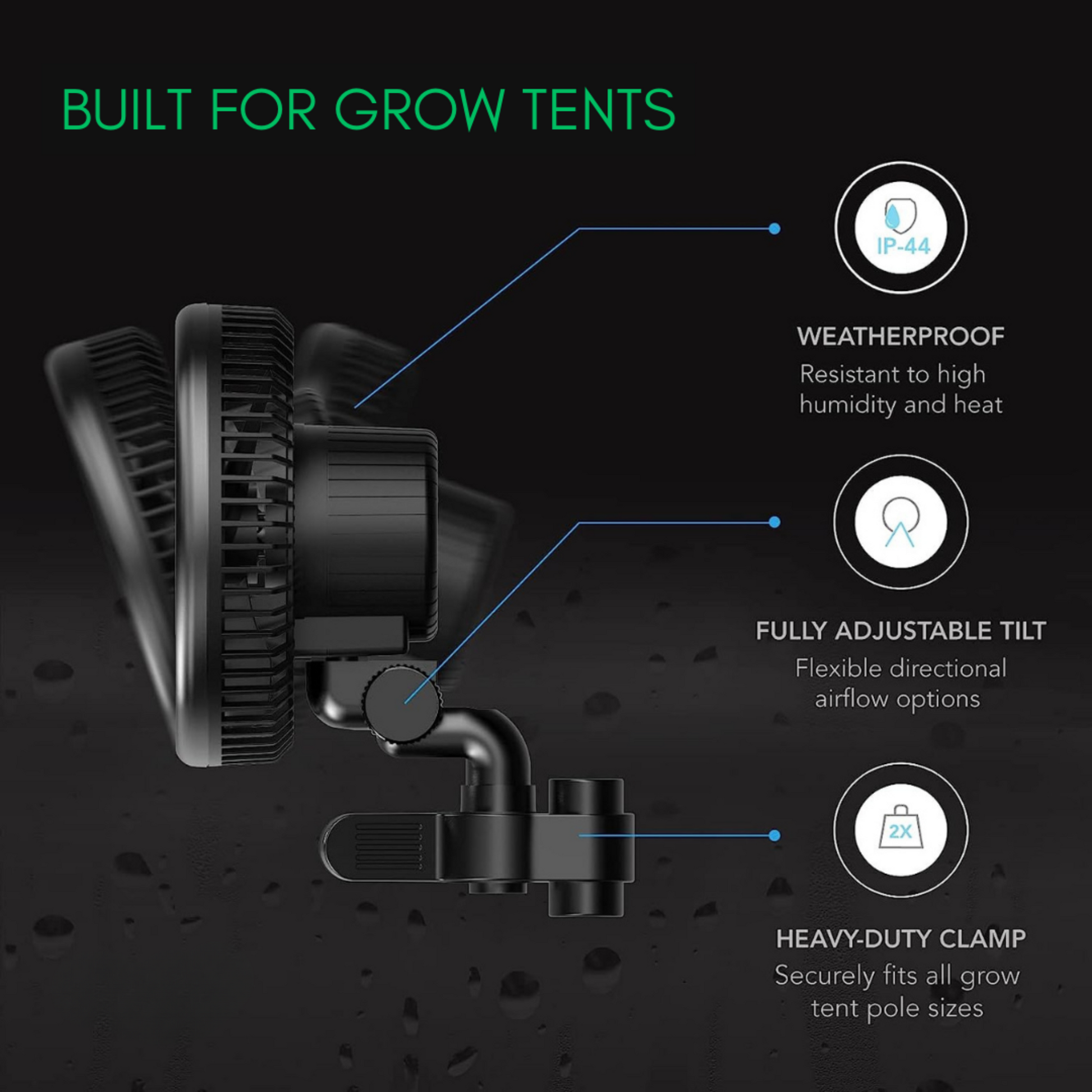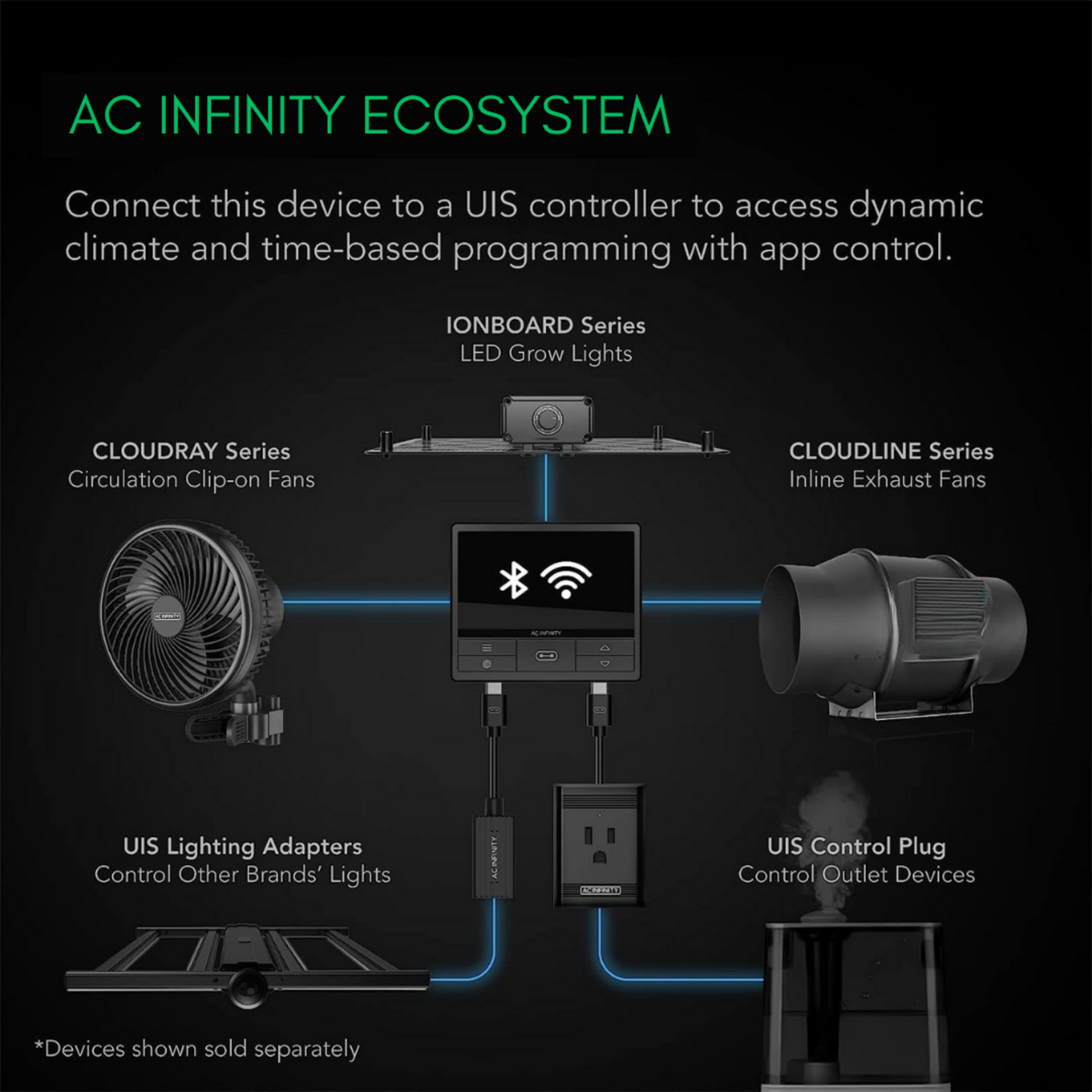 HYDROAIR IP-44 rated for resistance to high humidity and heat. Connects with smart controllers to access climate triggers, grow cycles, scheduling, and more.
