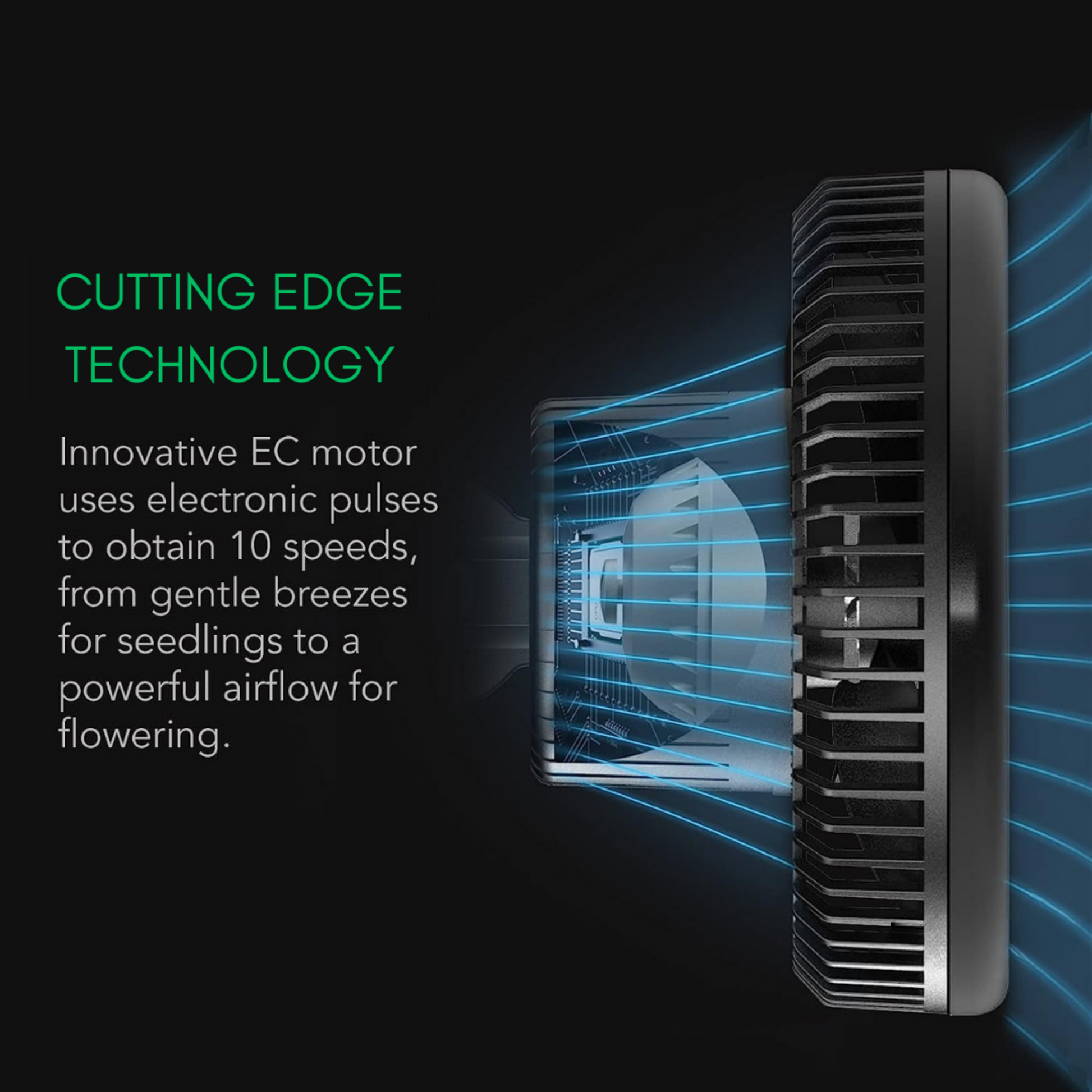 Digital 10 speeds from gentle breezes for seedlings to a powerful airflow for flowering. EC-motor provides precise air circulation for all growth stages.