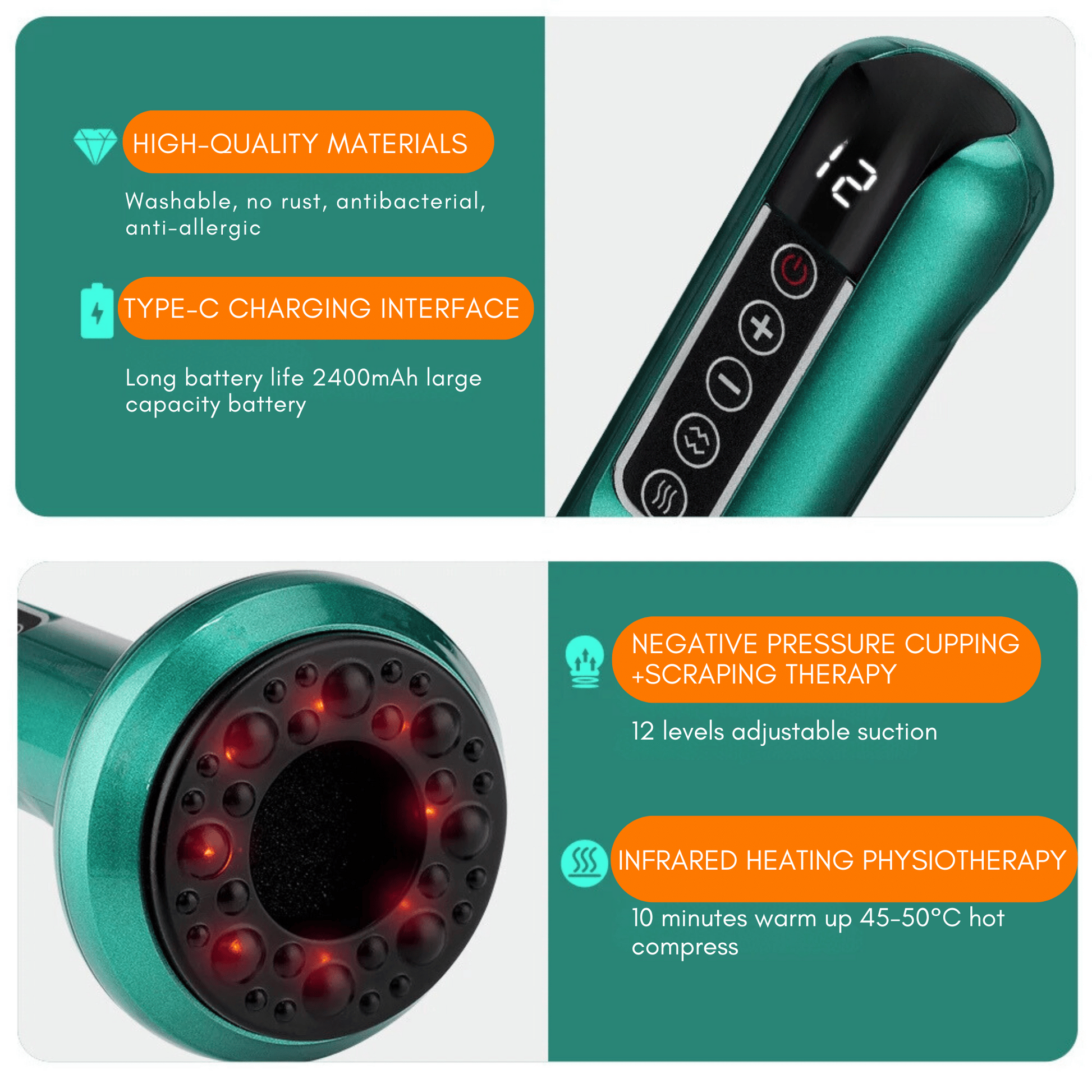 The REJUVACUP is equipped with an advanced magnetic head that goes beyond traditional cupping. By stimulating the meridians and improving whole-body metabolism, it promotes better blood circulation and enhances the absorption of essential oils, leading to improved overall health. This feature is ideal for those looking to boost their energy levels, improve circulation, and enjoy the added benefits of incorporating essential oils into their wellness routine.