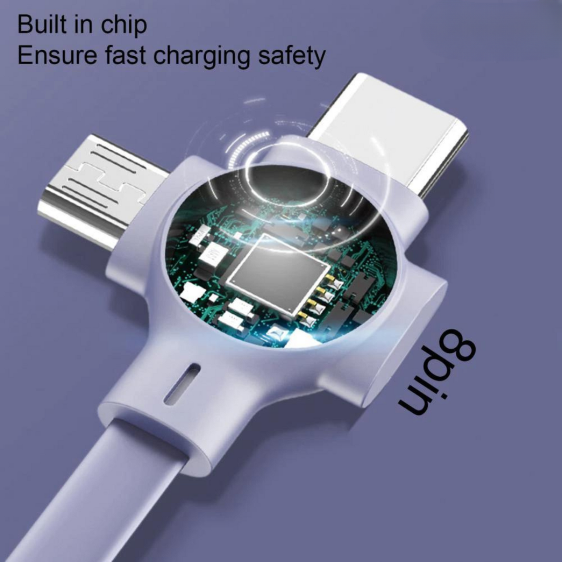 With micro USB, 8pin, and type-c interfaces, it works with all my devices, no matter what brand or model they are. The cable is also safe to charge and doesn't cause any damage to my devices. I don't have to worry about overcharging or short circuits.
