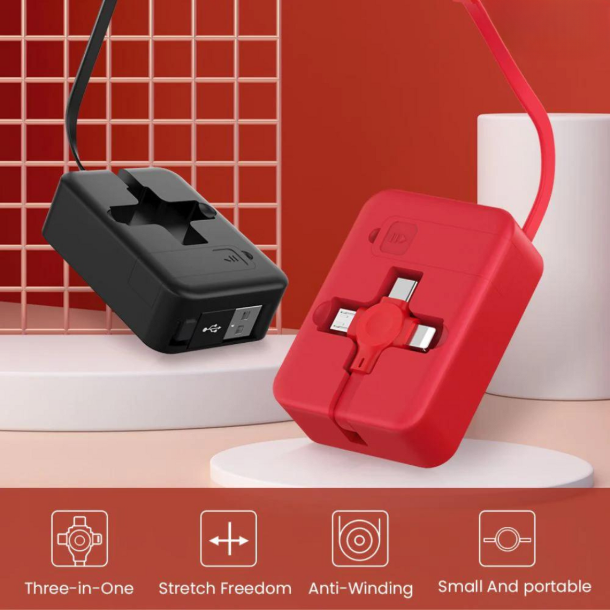 ⭐⭐⭐⭐⭐ "Fits in my small purse, no cord tangling as with 3 separate cords. So nice to instantly be able to have the correct cord ready to use. Cords snap back into place where it’s protected from damage. I’ve ordered a bunch more to give as gifts."