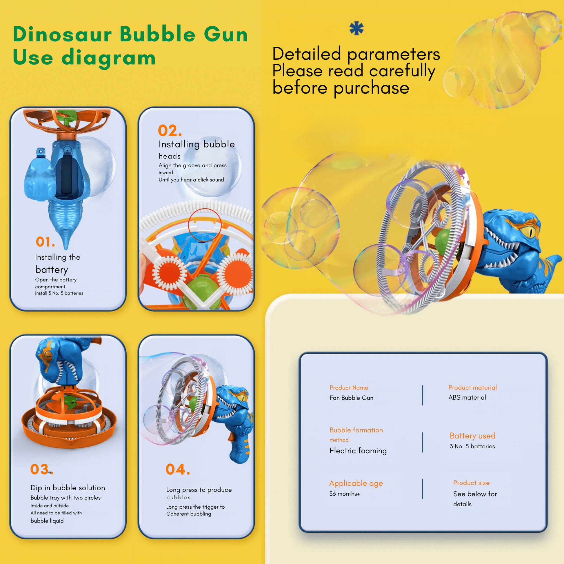 With its dinosaur design and bubble-blasting power, ROARBUBBLES becomes the centerpiece of playdates and family gatherings. Your home will be known as the go-to spot for excitement and laughter, leaving kids exhilarated and parents satisfied.