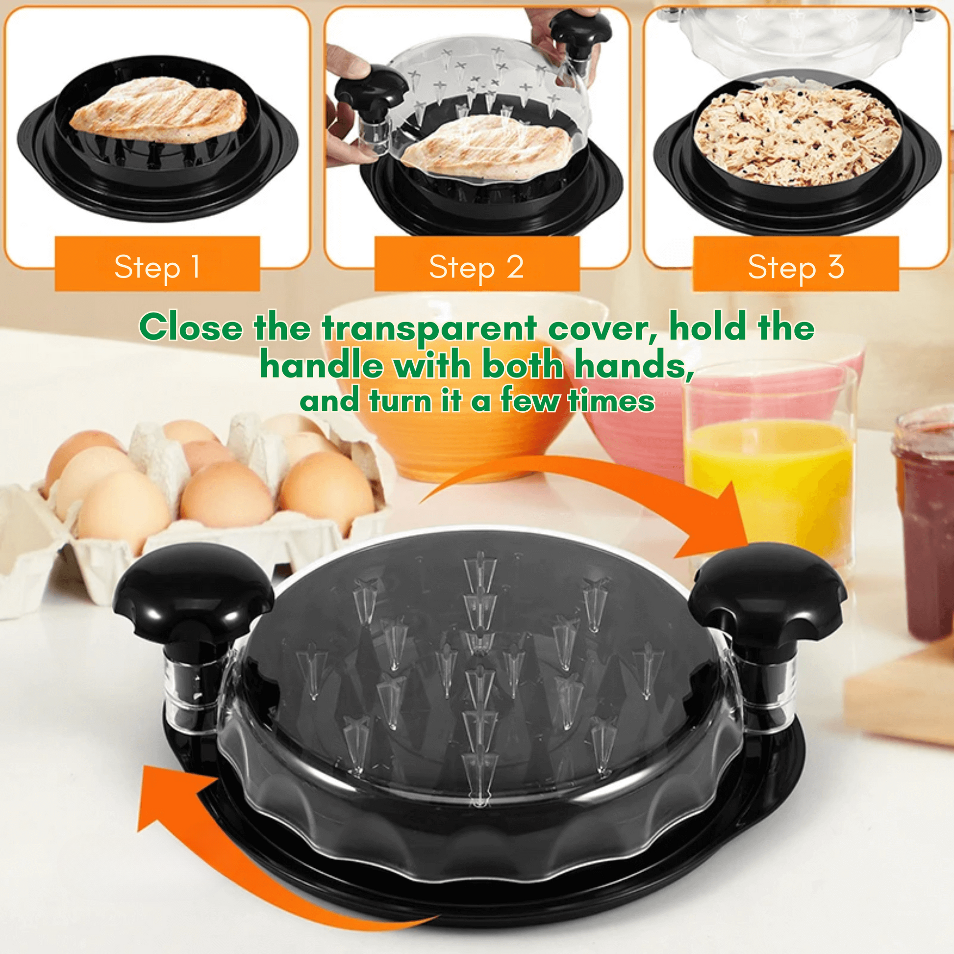 Tired of uneven, messy shredding? The SHREDMASTER solves that problem with its ultra-sharp blades that deliver consistent, perfectly shredded meat every time, saving you the hassle and frustration of manual methods.