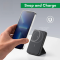 Tired of holding your phone while watching videos or making video calls? SNAPCHARGE’s foldable kickstand offers the perfect viewing angle. Prop it up on your desk, tray table, or even in your car, giving you hands-free convenience to enjoy content, work, or stay connected on the go. No more awkward positions or tiring hand grips—just effortless use, anytime, anywhere.